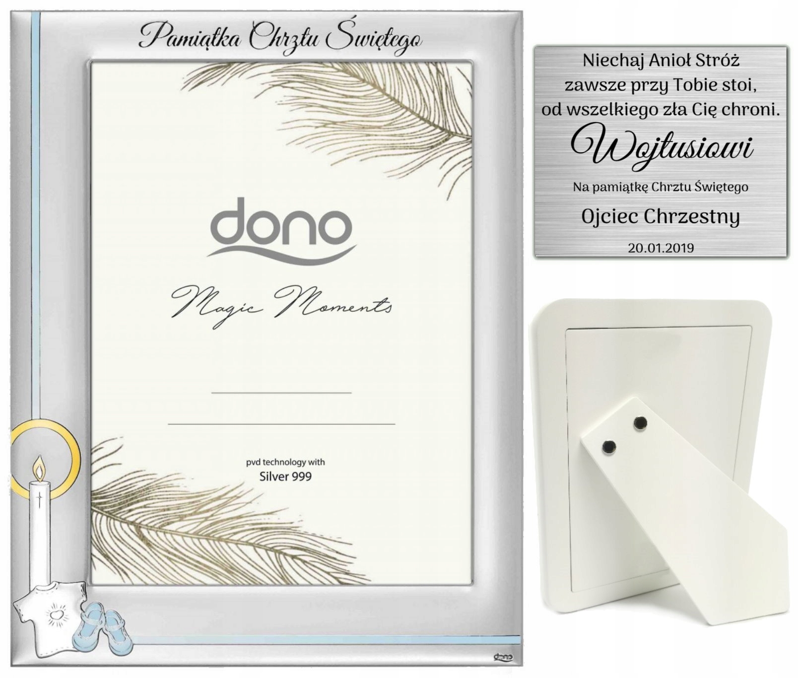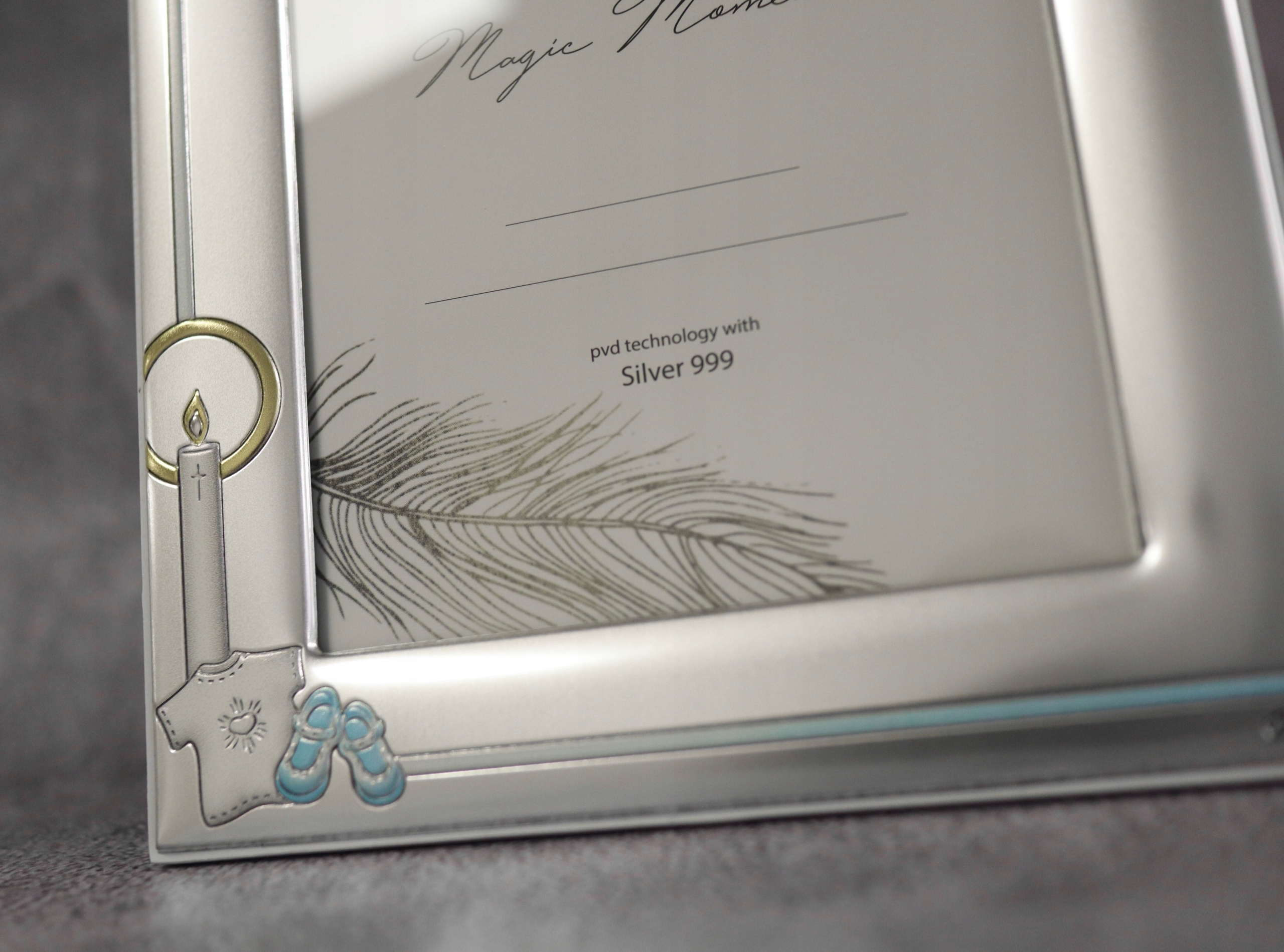 ✅ Срібна рамка з емблемою свічки, риза та взуттяі напис Сувенір Святого Хрещення