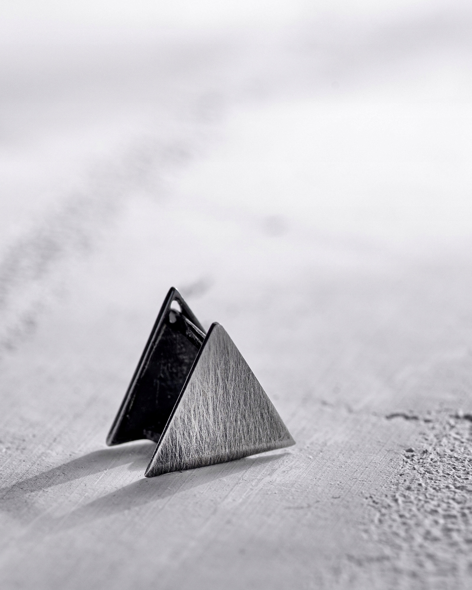 Унікальна срібна сережка з чорним матовим покриттям привертає увагу простою геометричною формою трикутника. «СКІЛЯ» символізує силу, стійкість і непохитність, нагадуючи нам про твердість каменю в життєвих випробуваннях. Ця сережка - втілення сили характеру і впевненості в собі, ідеально підходить сучасній людині. Мінімалістичний дизайн і виразні лінії роблять цю прикрасу ідеальним вибором для тих, хто цінує простоту, але в той же час хоче висловити свою індивідуальність.