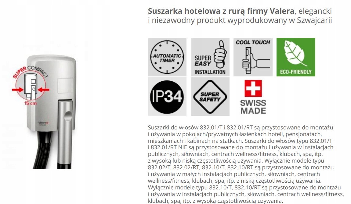 сушарка готелю з трубою Valera , елегантний і надійний продукт, вироблений у Швейцарії