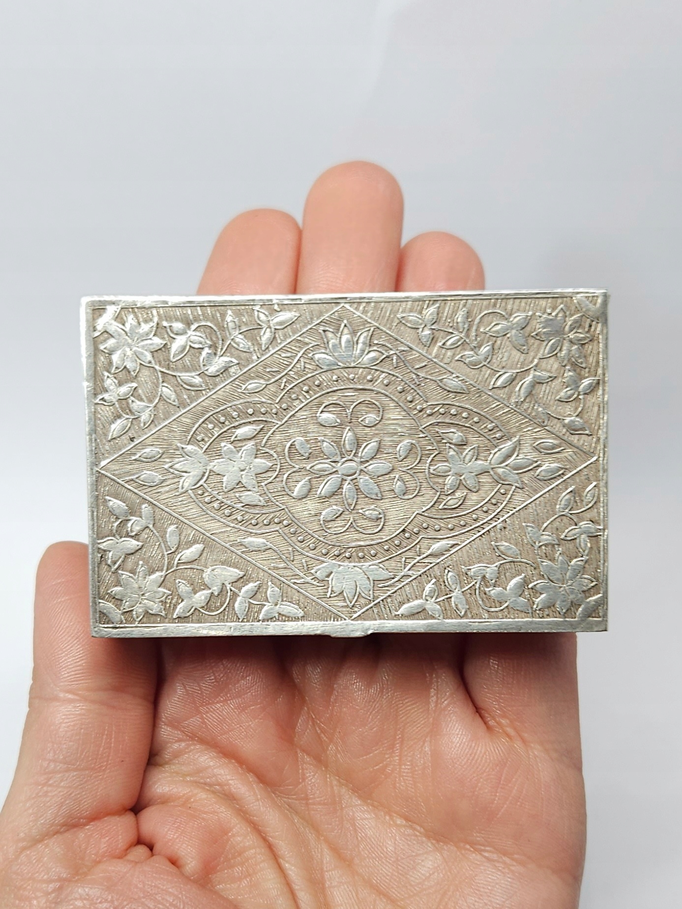 Срібна табакерка, оздоблення срібло 0800 20 століття з квітами