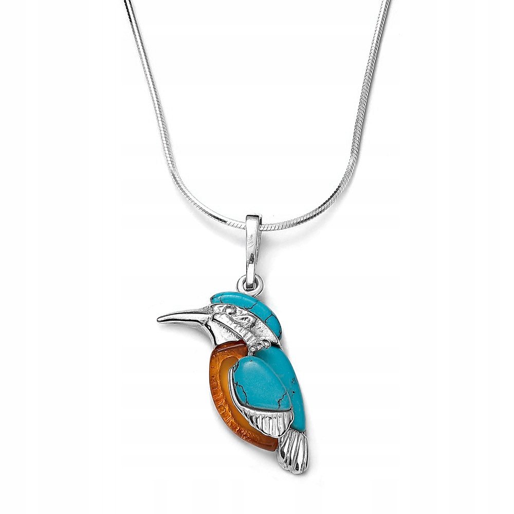 ПІДВІСКА З СРІБНИМ ПТАХОМ КІНГСГЕРА З БУРШТИНОМ ТА БІРЮЗОЮ
