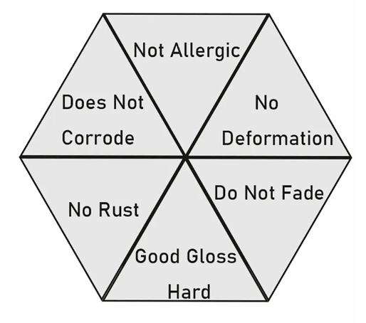 - ІНШЕ: НЕ АЛЕРГІЧНА, ГІПОАЛЕРГЕННА СТАЛЬ, НЕ ДЕФОРМУЄТЬСЯ, НЕ ІРЖІЄ, ВИСОКА ЯКІСТЬ РОБОТИ