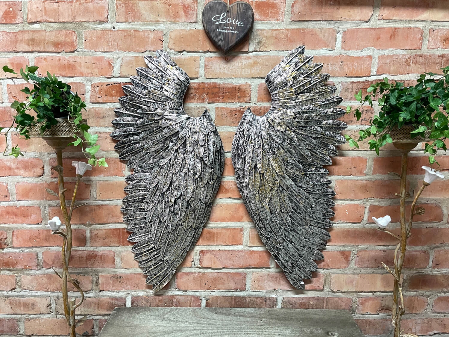 Срібне патиноване ангельське крило на стіні - додайте трохи магії та чарівності