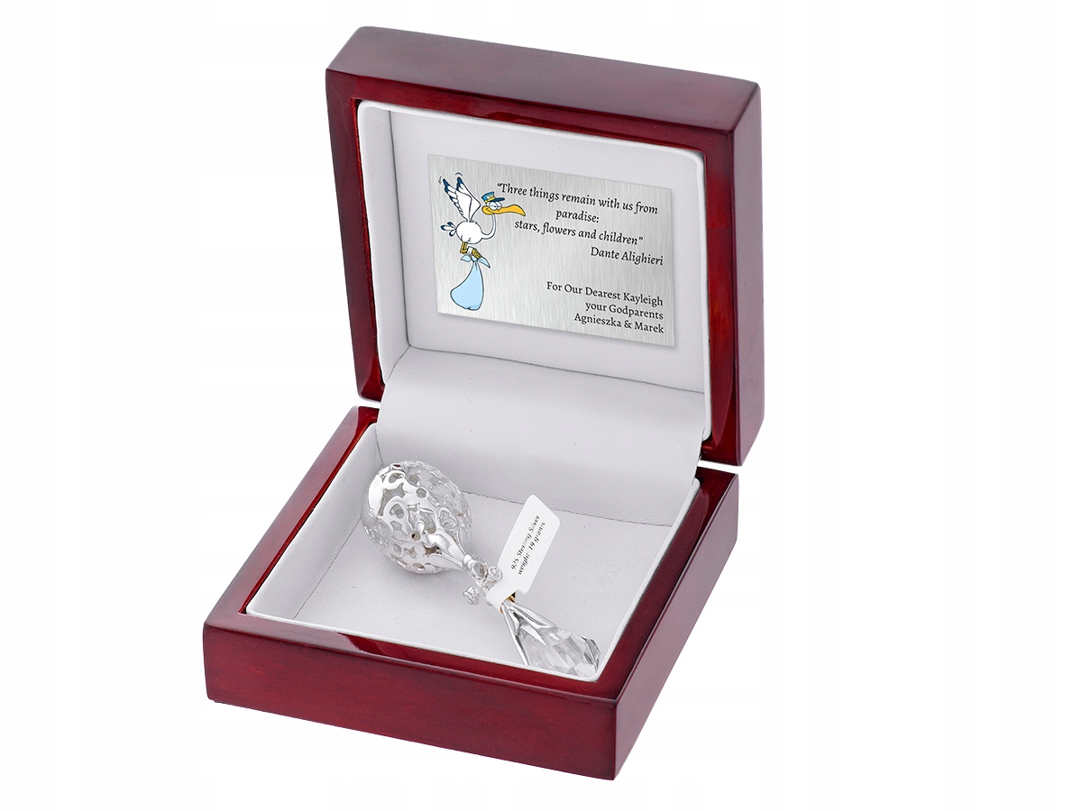 - Срібне брязкальце – це чудовий подарунок до свята.Святе Хрещення,народження або наступний день народження.