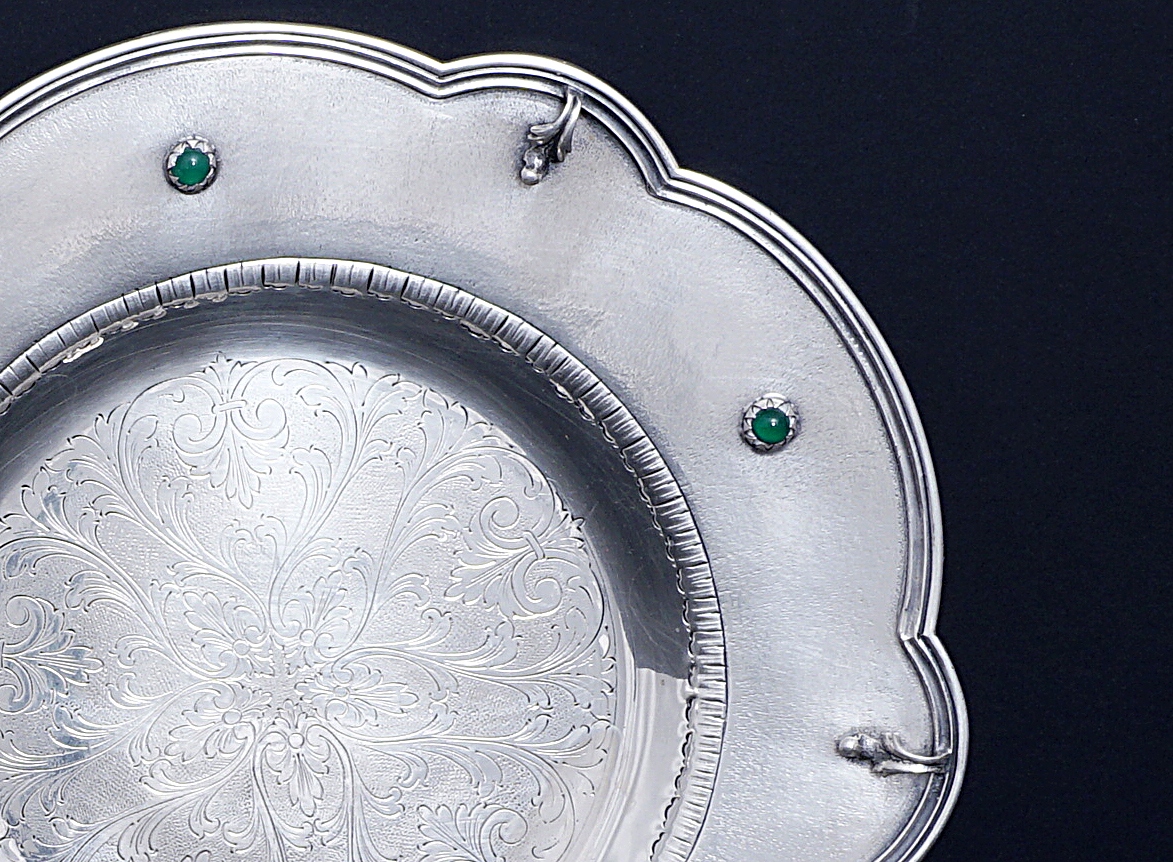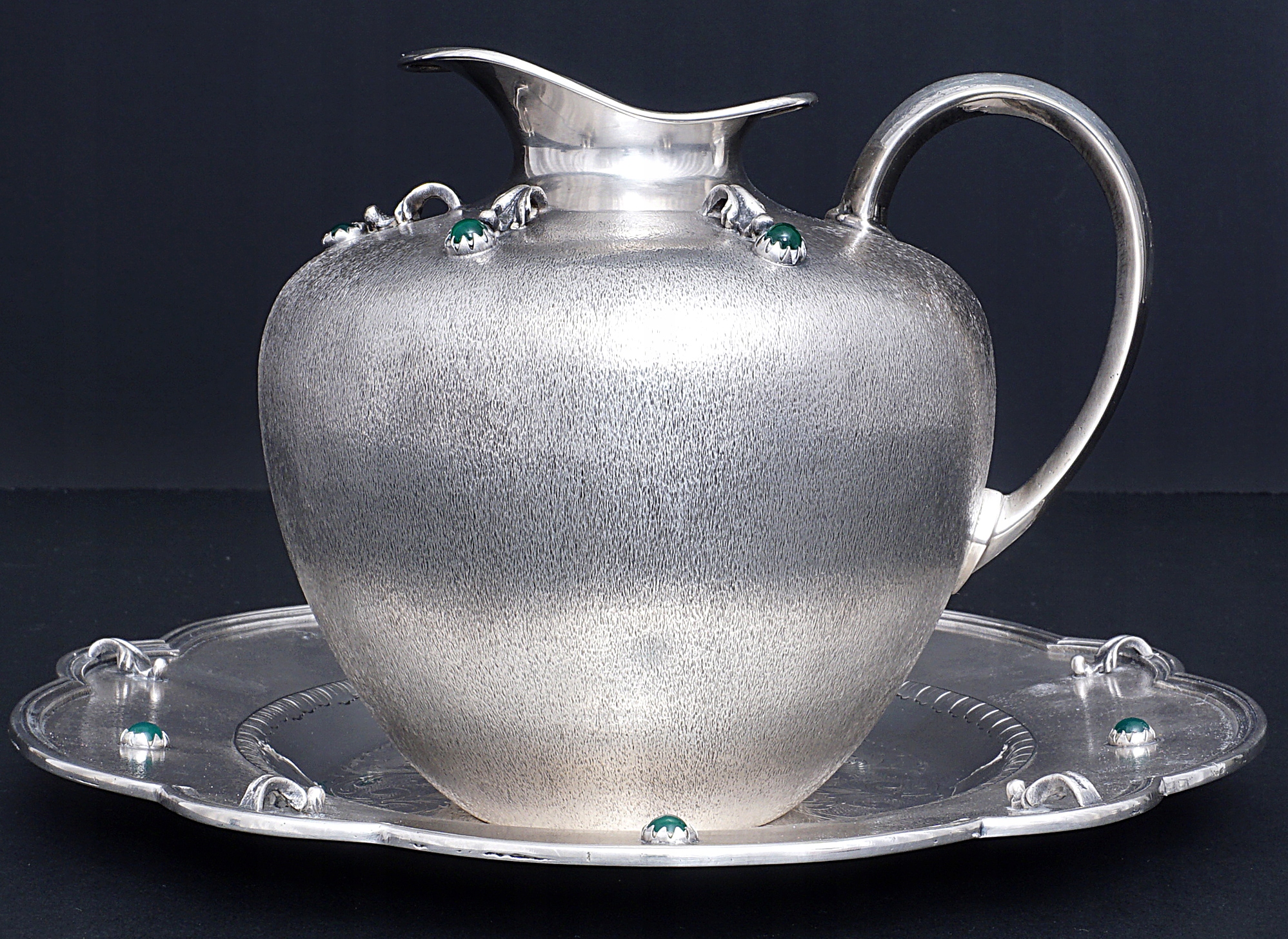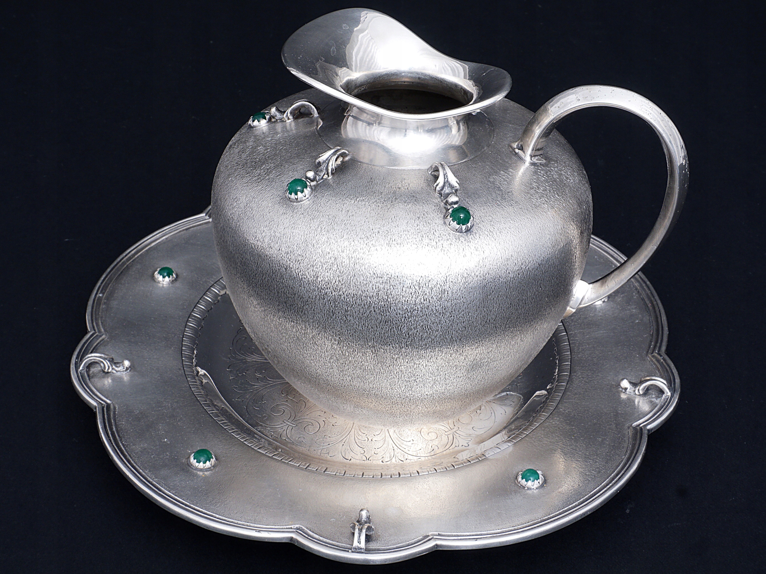 Вино або водний глечик з тарілкою, виготовленим із атласного срібла 800.