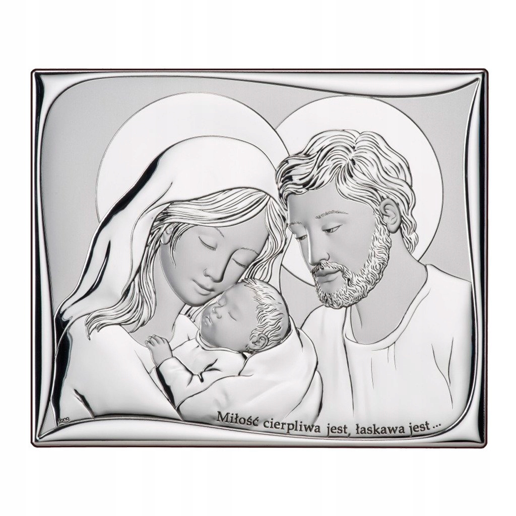 Срібна картина із зображенням Пресвятої Родини є зображенням єднання (причастя) Святих Осіб. Водночас цей образ виражає єдність, любов, життя подружньої пари та християнської сім’ї, яка прагне до святості та створення спільності у власному шлюбі та сім’ї, що робить його ідеальним подарунком на весілля чи народження дитини. дитина.