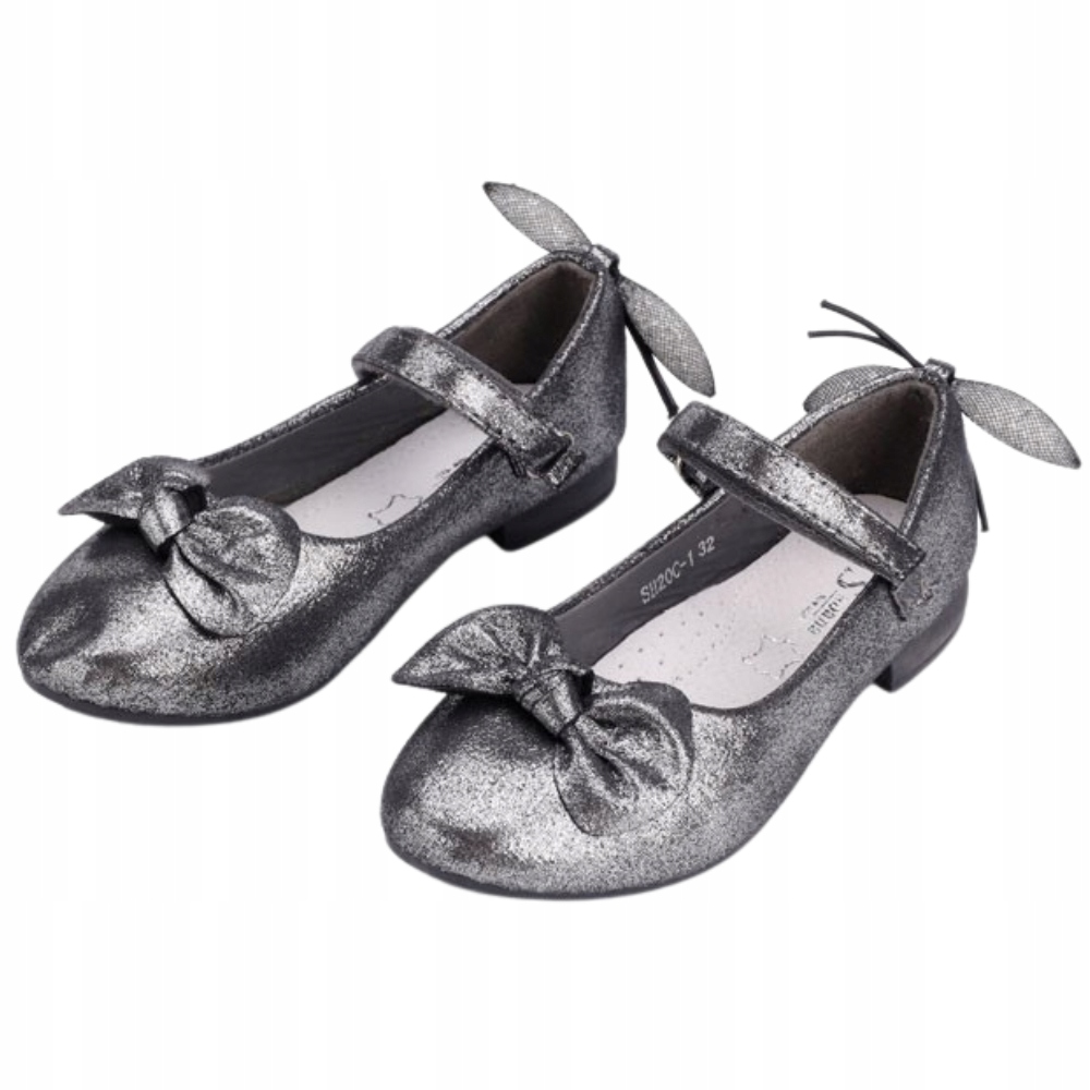 СРІБНІ БАЛЕРИНКИ ДІВОЧІ НА ЛИПУЧКАХ ВСТАВКА БЛИСКУЧА ЕКОШКІРА ПЛОСКА