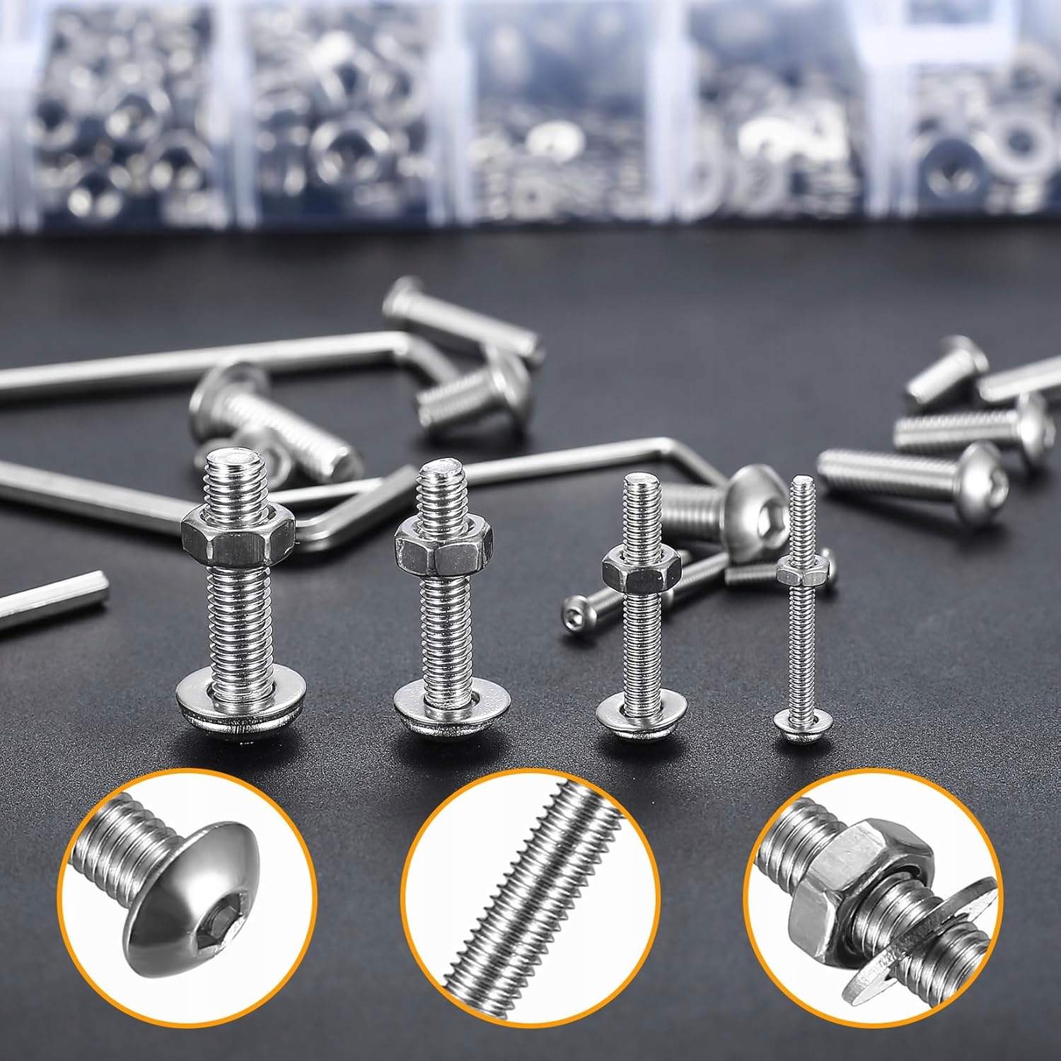 ▶ Набір містить популярні розміри гвинтів: M2, M3 та M4 M5, які працюватимуть у різних застосуванні, від електроніки до домашнього та велосипедного обладнання. що гарантує довгострокове використання навіть у складних умовах.