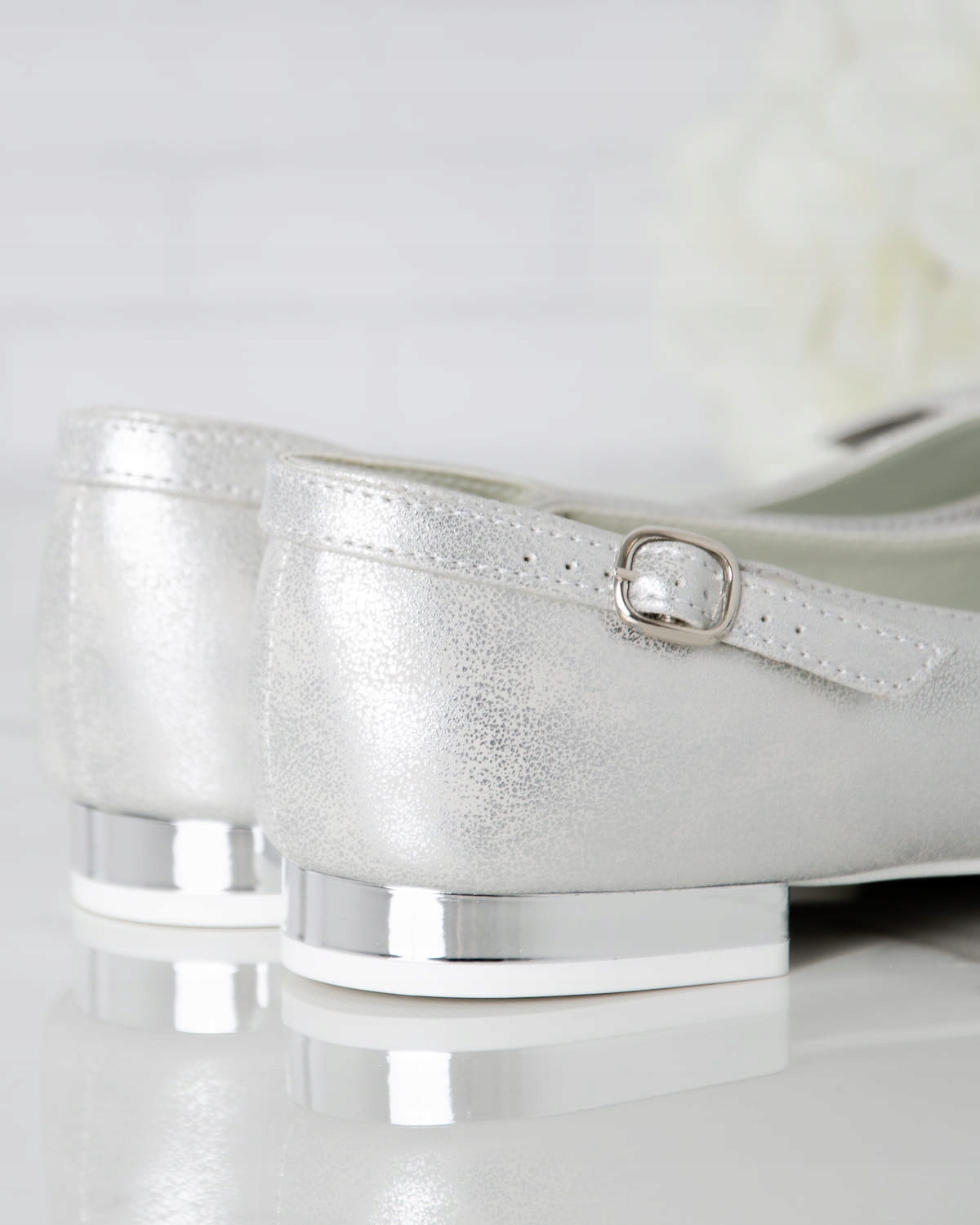 Елегантне офіційне взуття сріблястого кольору для дівчаток. Взуття має гарну форму, тому надійно облягає ногу. Крім того, вони мають ремінець, який можна використовувати спереду для кращої підтримки стопи або ззаду як прикрасу. Модель має ніжний каблук висотою 1,5 см, сріблястого кольору. Гарний бант зі срібним декором і перлиною додає їм шарму. Зовнішня частина взуття виконана з екологічної шкіри, а устілка - з натуральної шкіри. Класичні балетки чудово підійдуть і як костюм у день Першого Причастя, і під час інших урочистостей тощо.