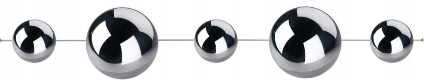Товар виготовлено з високоякісної сертифікованої нержавіючої сталі, поверхня якої завдяки тривалому та складному процесу полірування створює т.зв. Глянцевий надзвичайно гладкий і відображає навколишнє середовище, як дзеркало. Використана сталь товщиною 0,5 мм дуже тверда і не гнеться. У набір входить 5 куль двох різних діаметрів, розташованих по черзі (10 см і 6 см).