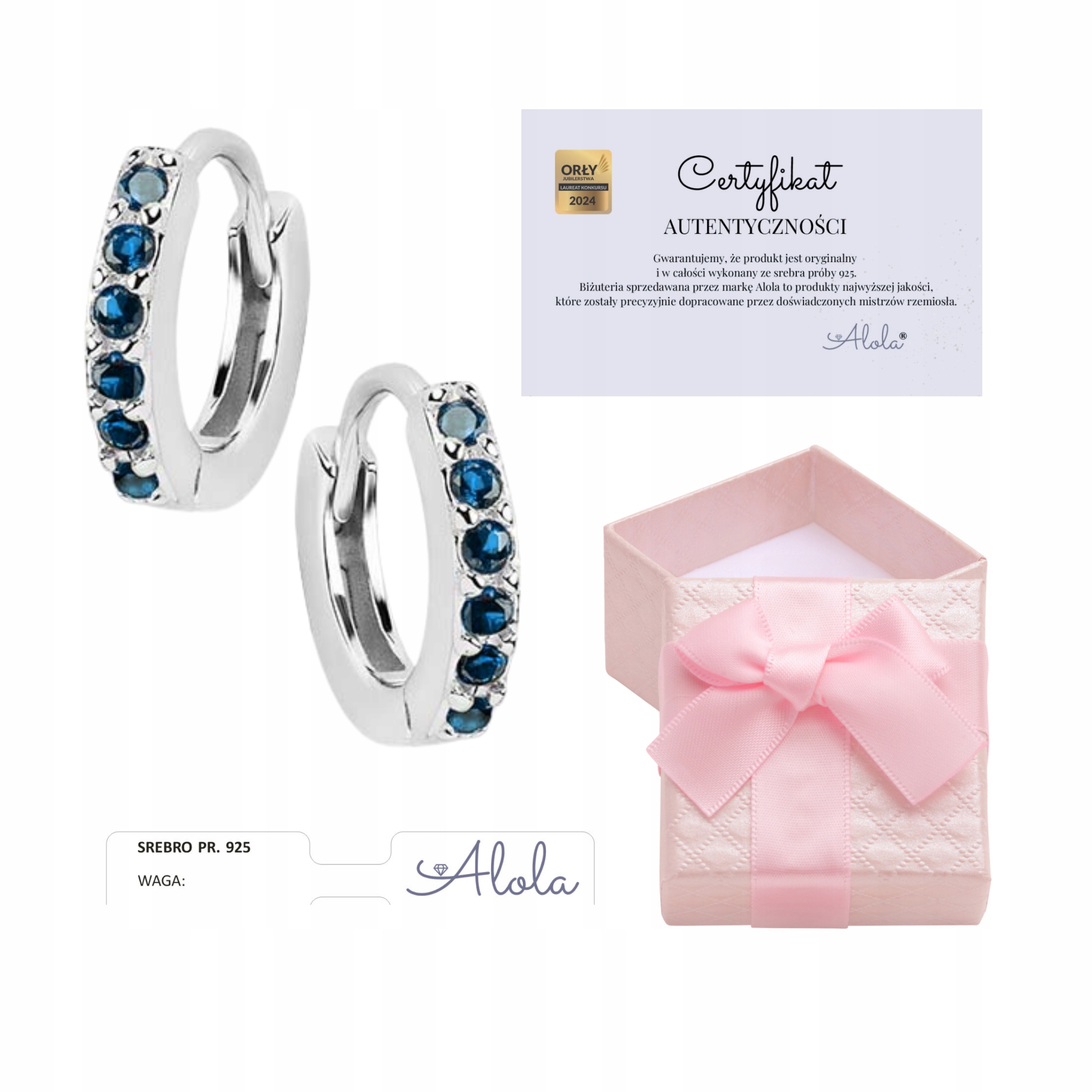Документ, виданий брендом Alola, є гарантією придбання справжнього продукту, виготовленого з 925 срібла, який підтверджується зразком срібла та іменком листа A.