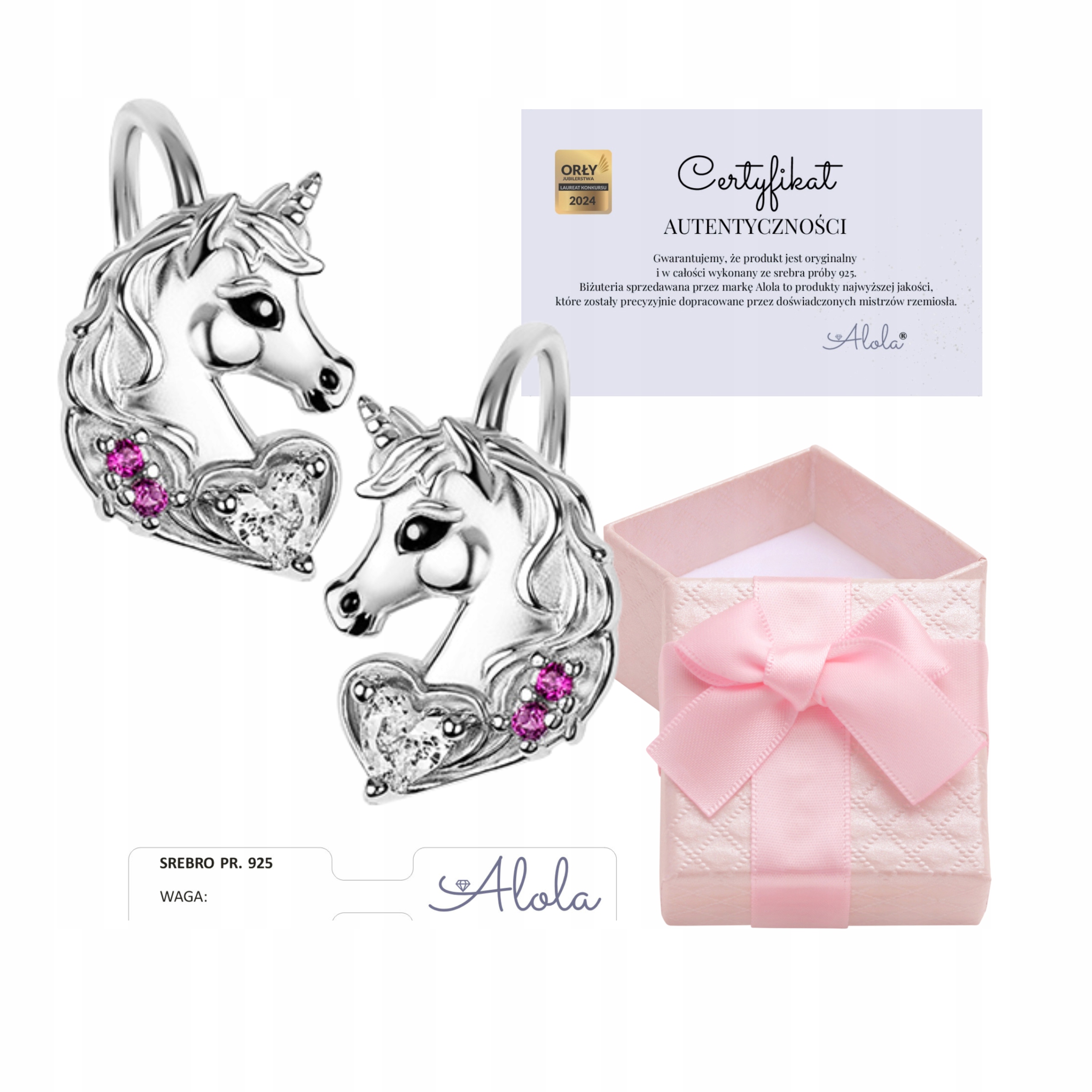 Документ, виданий брендом Alola, є гарантією придбання справжнього продукту, виготовленого з 925 срібла, який підтверджується зразком срібла та іменком листа A.