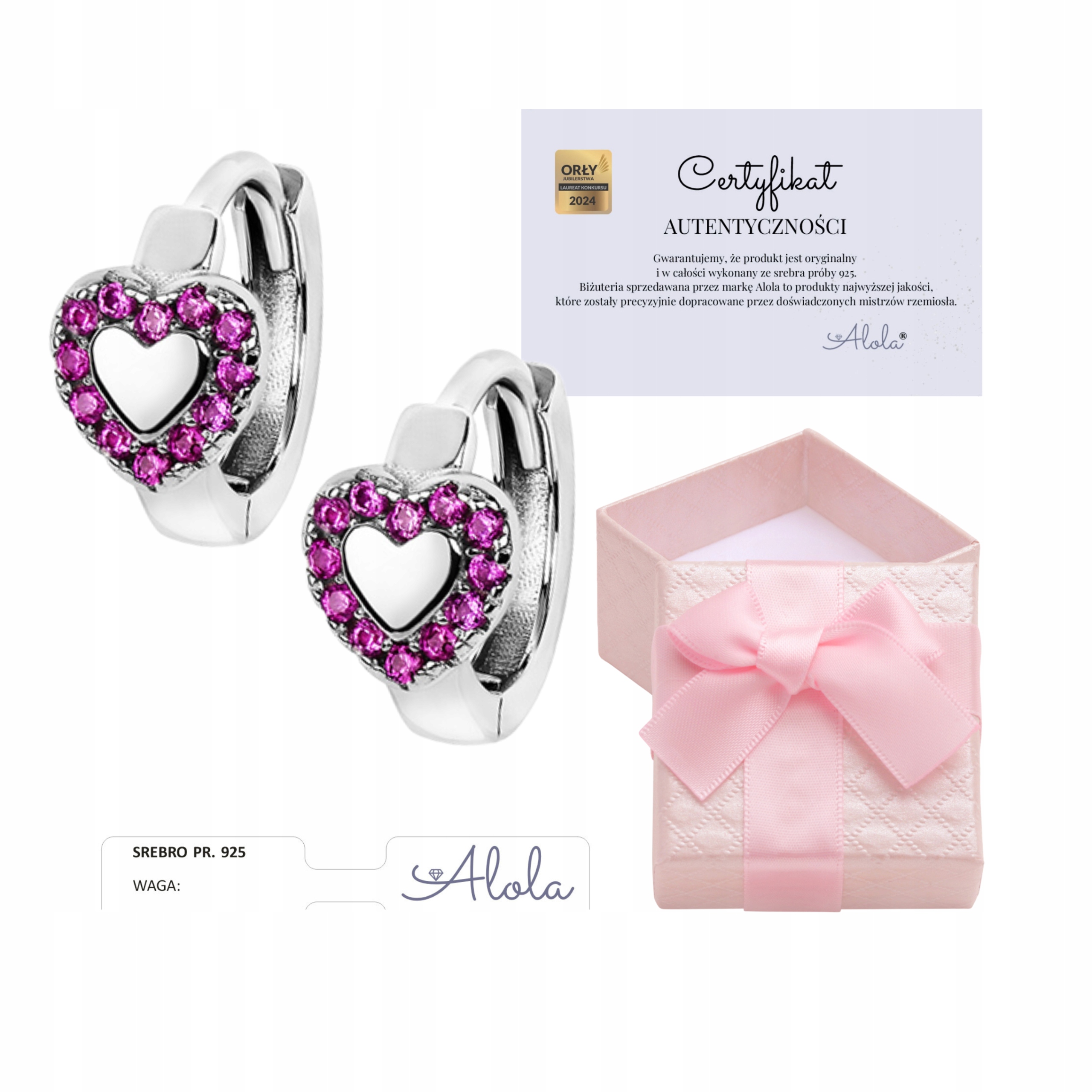 Документ, виданий брендом Alola, є гарантією придбання автентичного виробу, виготовленого зі срібла 925 проби, що підтверджується клеймовою пробою срібла та однойменною літерою А.