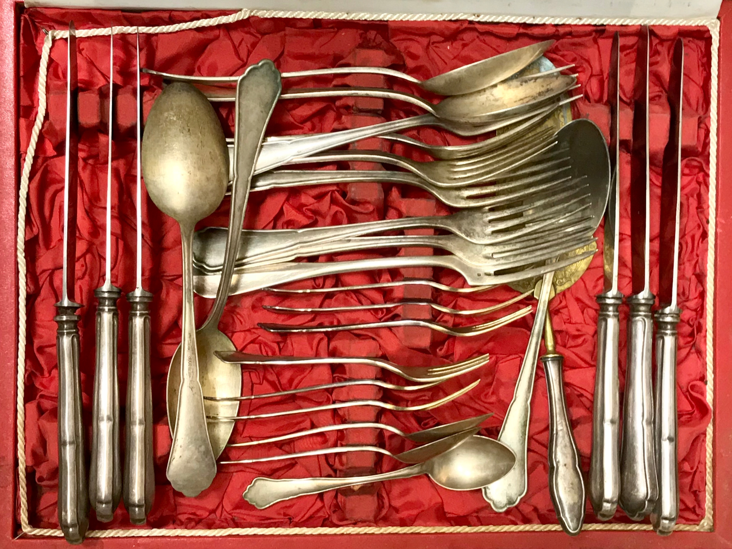 - Набір срібних столових приборів зі срібла 800 проби Загальна вага 1000г.