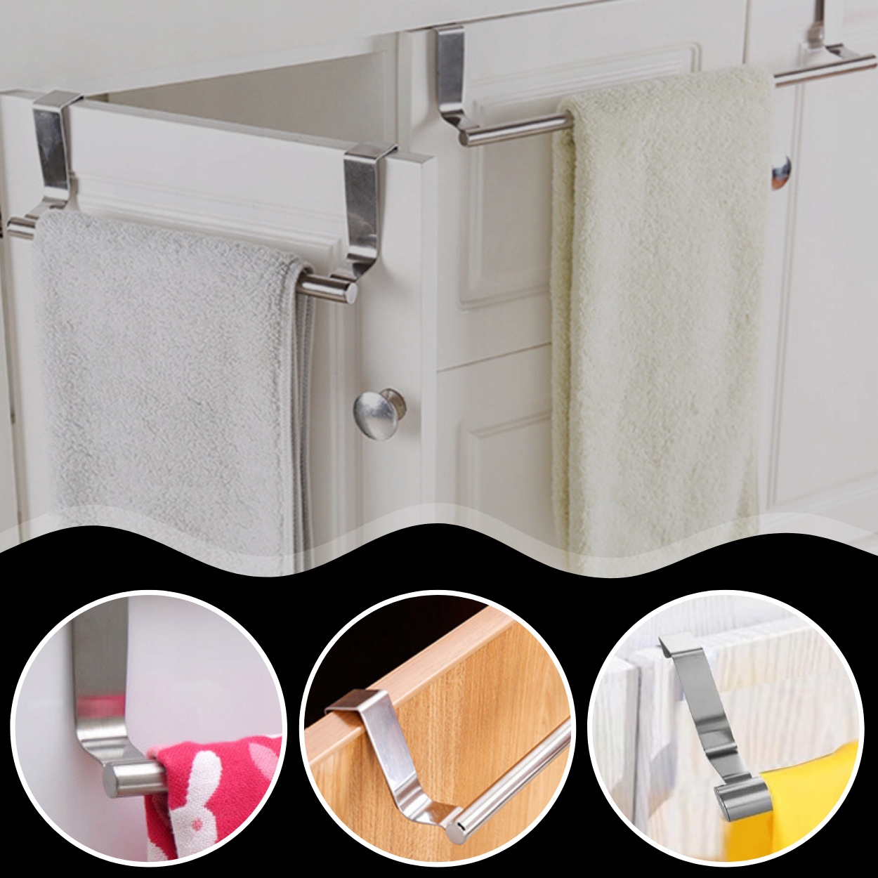✅ Вішалка для рушників для кухні чи ванної кімнати легко встановити - просто повісьте її двері або дверцята шафи, що дозволяє швидко і без проблем встановити. Завдяки цьому вам не потрібні інструменти чи додаткові аксесуари, щоб насолодитися комфортом і порядком на кухні чи у ванній кімнаті.