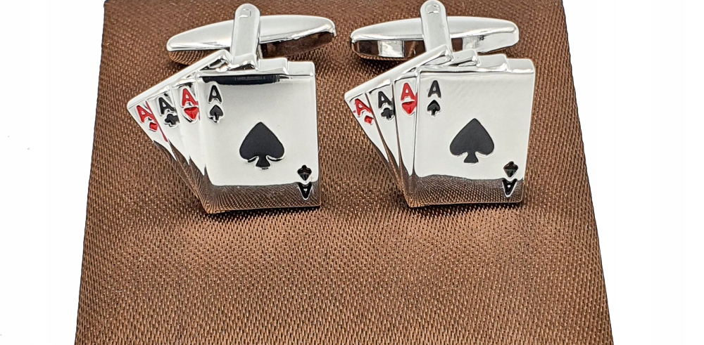 Ефектні запонки із серії hobby на рукави сорочки. Вони поєднують багаторічні традиції та вишуканий стиль у вічних, обов’язкових чоловічих прикрасах. Срібне наповнення головки кліпси, в якій центр виконано технікою тиснення тузів на талії. Виготовлена з нержавіючої сталі, покритої незмивним шаром цинкування. Ця сировина була декоративним матеріалом для чоловічих прикрас протягом багатьох років - фантастична взаємодія структур верхньої частини кліпси привертає увагу та підкреслює унікальність усієї структури цього стилю. Запонки для сорочки - ідеальний аксесуар для чудових урочистостей, наприклад, весілля, банкету чи гри в покер:)