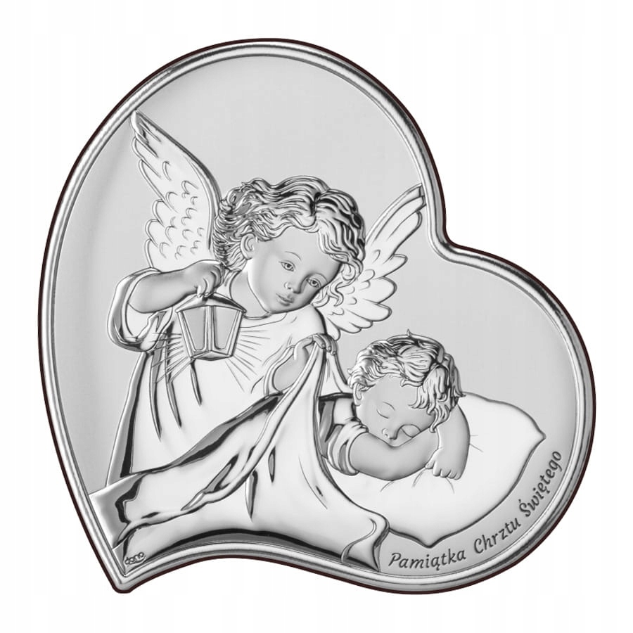 Ексклюзивна срібна картина, бренд ,, італійський виробник сувенірної продукції зі срібла. На малюнку у формі серця зображено Ангел-охоронець з ліхтариком. Внизу малюнка напис «Сувенір Святого Хрещення». Така картина є унікальним подарунком чи сувеніром на особливу подію, наприклад, на Святе Хрещення.