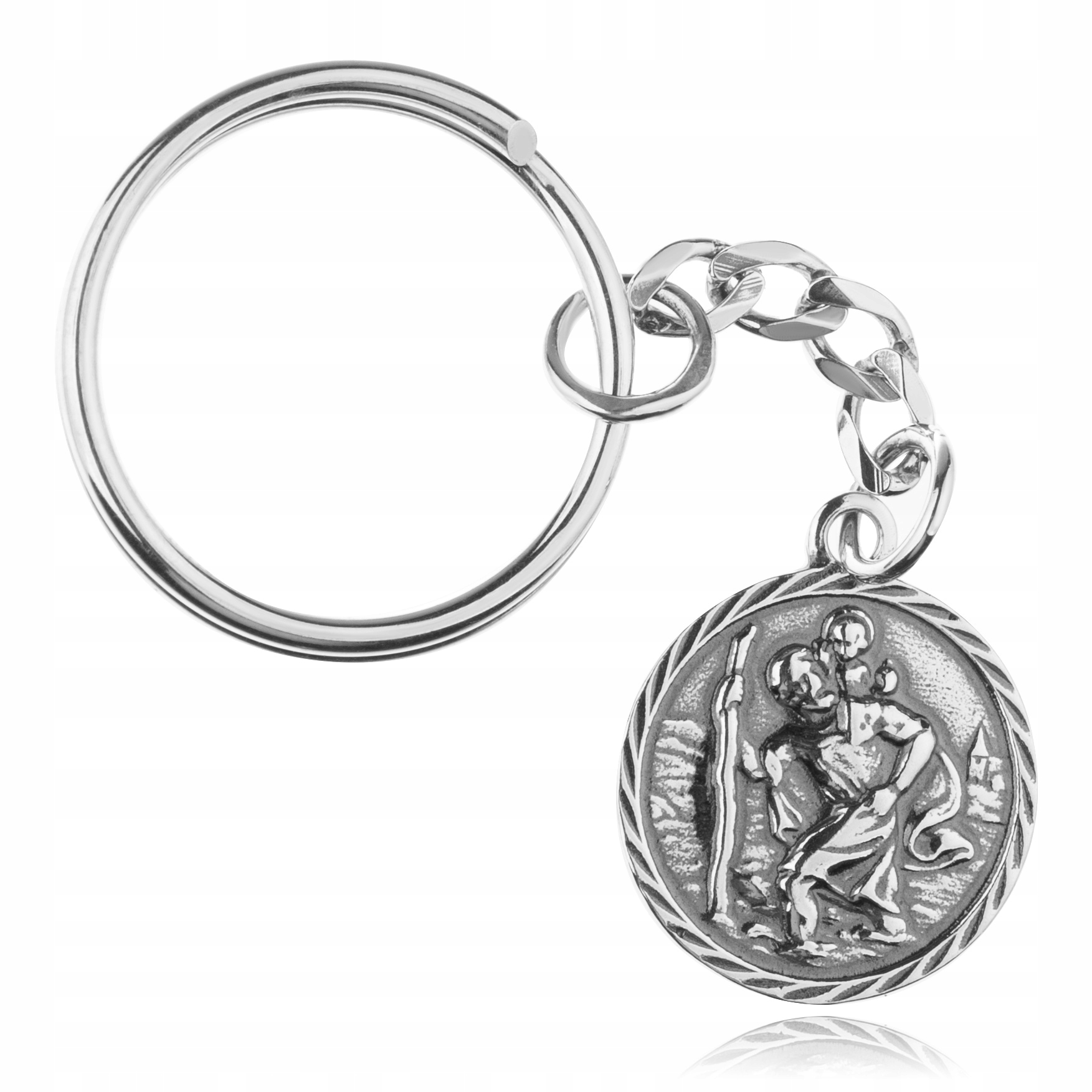 Брелок зі срібним оксидованим* медальйоном св. Кшиштоф. Ідеально підходить для ключів і на подарунок. Виріб виготовлено повністю зі срібла925 найвищої якості.