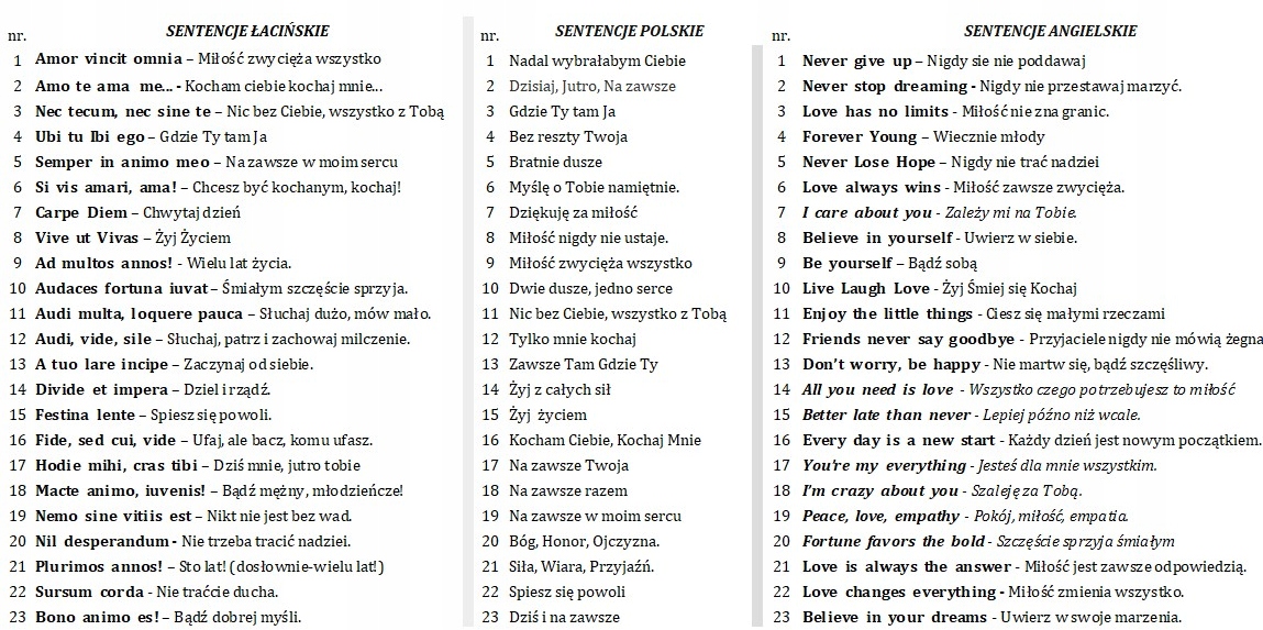 - кількість латинських/польських/англійських максим – якщо вибрано – максими нижче