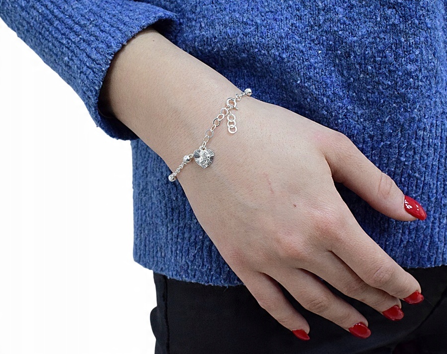 Срібний браслет на вервиці, медаль «Серце».