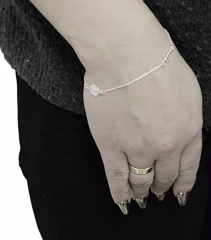 Срібний браслет з медаллю та хрестом . Браслет новий з тегом, безпосередньо від виробника. Упакований у смачну італійську коробку ювелірних виробів, щоб вибрати хрещення, причастя, універсальне. був точно зроблений, ручна робота. Усі елементи розарію, виготовленого з чистого срібла 925. Картинки представляють саме той предмет, який розміщується для продажу