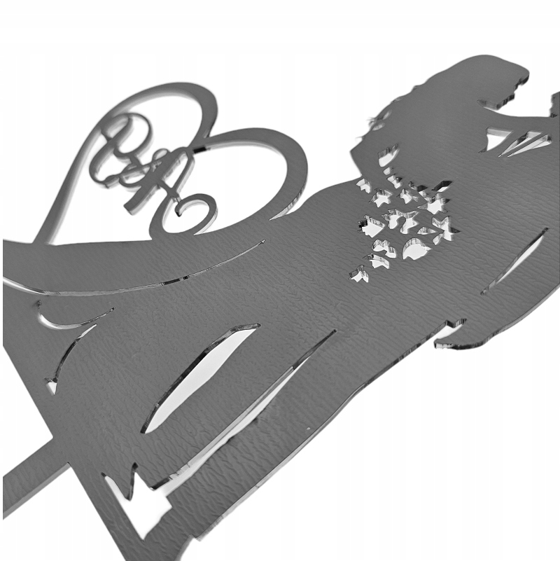 Додати блиск і елегантність до вашого весільного торта з нашим унікальним топпером! Виготовлений з високоякісного срібного дзеркального оргскла товщиною 2 мм, цей топпер представляє силует нареченої та нареченої з ініціалами, розміщеними в декоративному серці. Це не лише прекрасна прикраса, але й унікальний спосіб персоналізувати торт, який порадує всіх гостей.