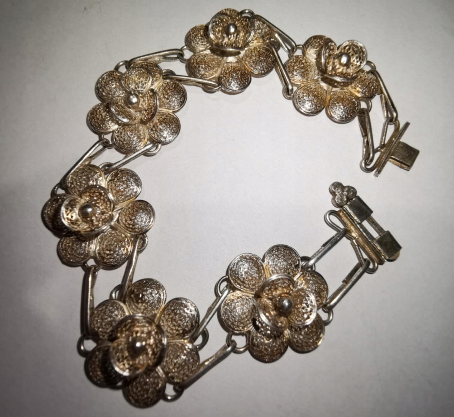 Срібний філігранний квітовий браслет