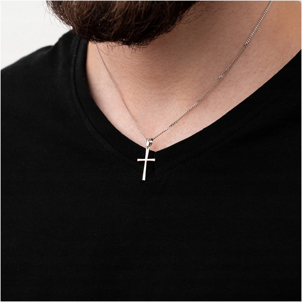 Срібний гладкий хрестик з ланцюжком, родоване срібло 925 проби ПАНЦЕРКА