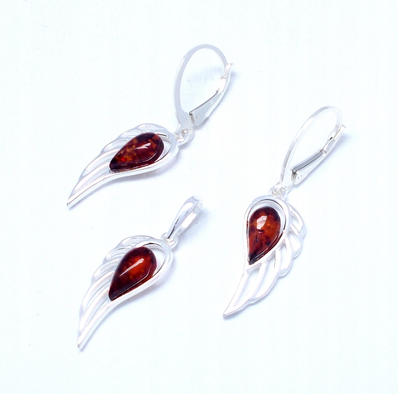 Срібний набір із балтійського бурштину та срібла 925 проби, кожен виріб супроводжується сертифікатом. Застібка сережки англійського типу, висота сережок із застібкою 38 мм, ширина 10 мм, висота кулона з підвіскою 30 мм, ширина 10 мм. Кожен товар відправляється в елегантній фірмовій упаковці. Оригінальний подарунок для особливих випадків. Набір також доступний з браслетом, окремий аукціон.