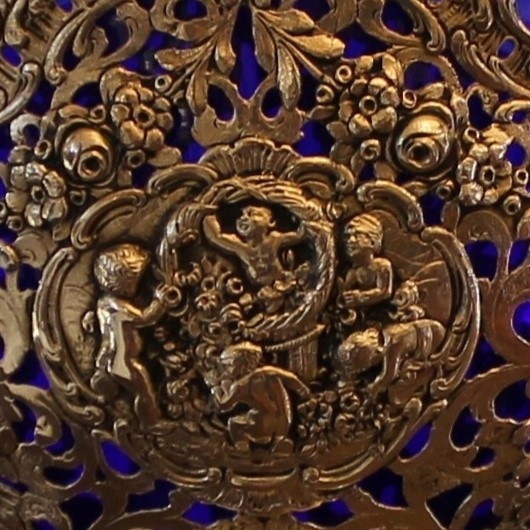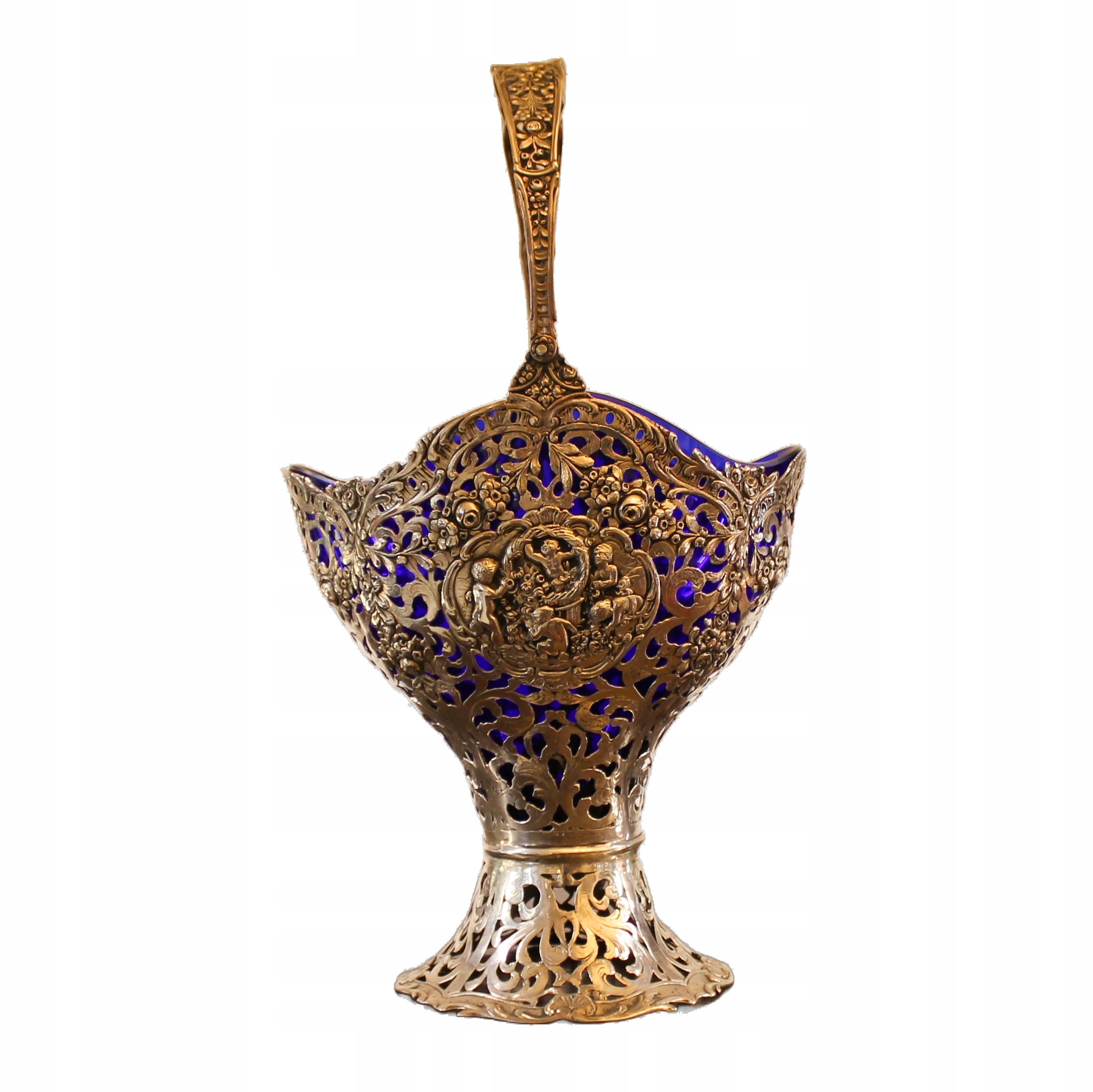 Срібний кошик з кобальтовим склом, початок 20 ст