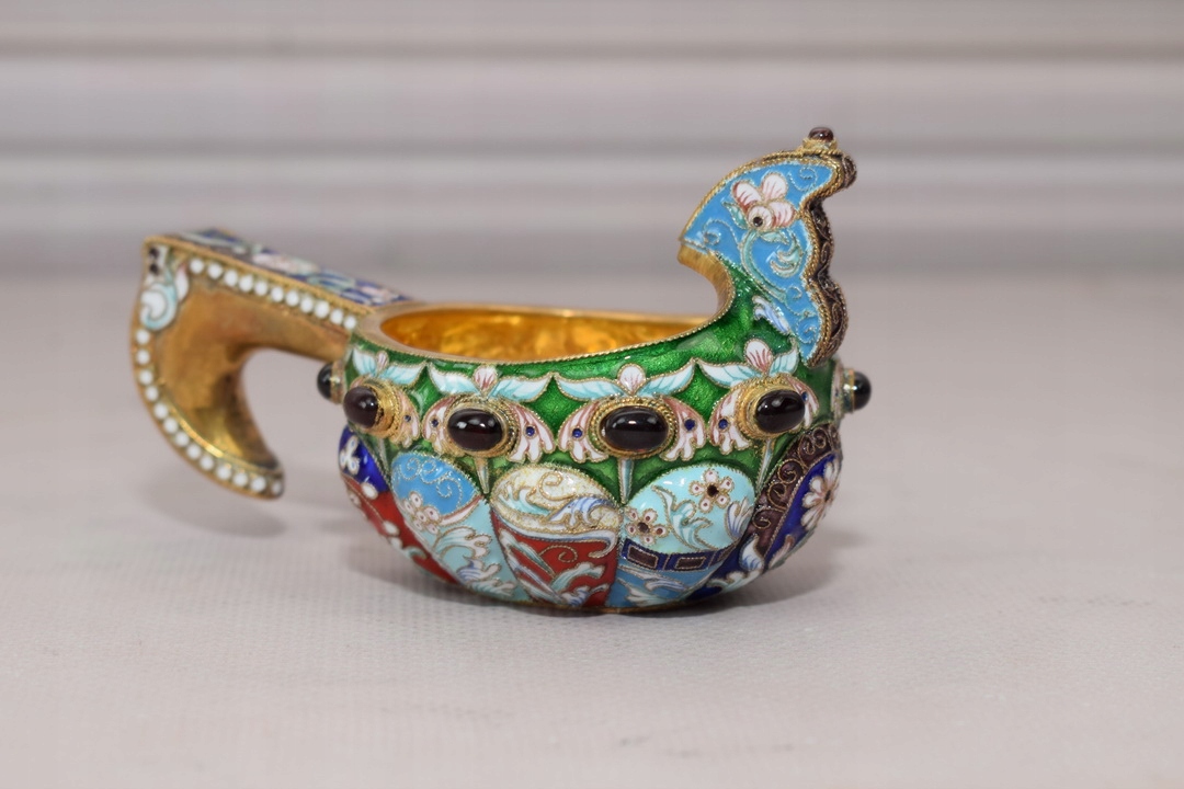 Здравствуйте, пропоную вашій увазі срібний емальований ковш для вина.