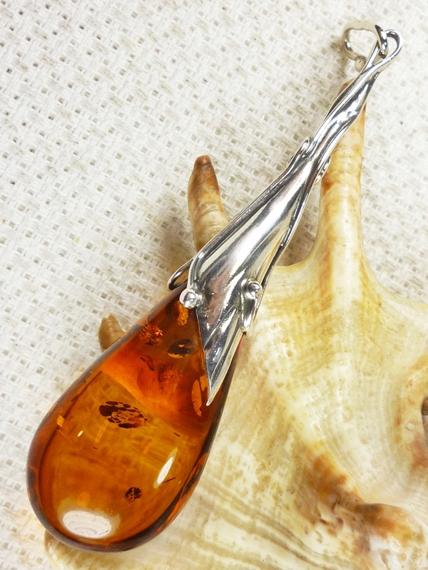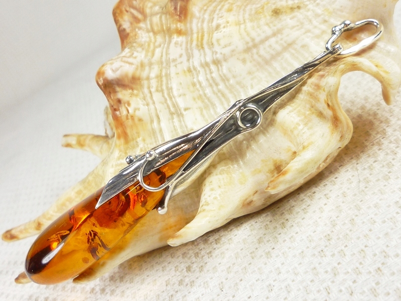 Срібний кулон 620/508 проби з бурштином - РУЧНА РОБОТА