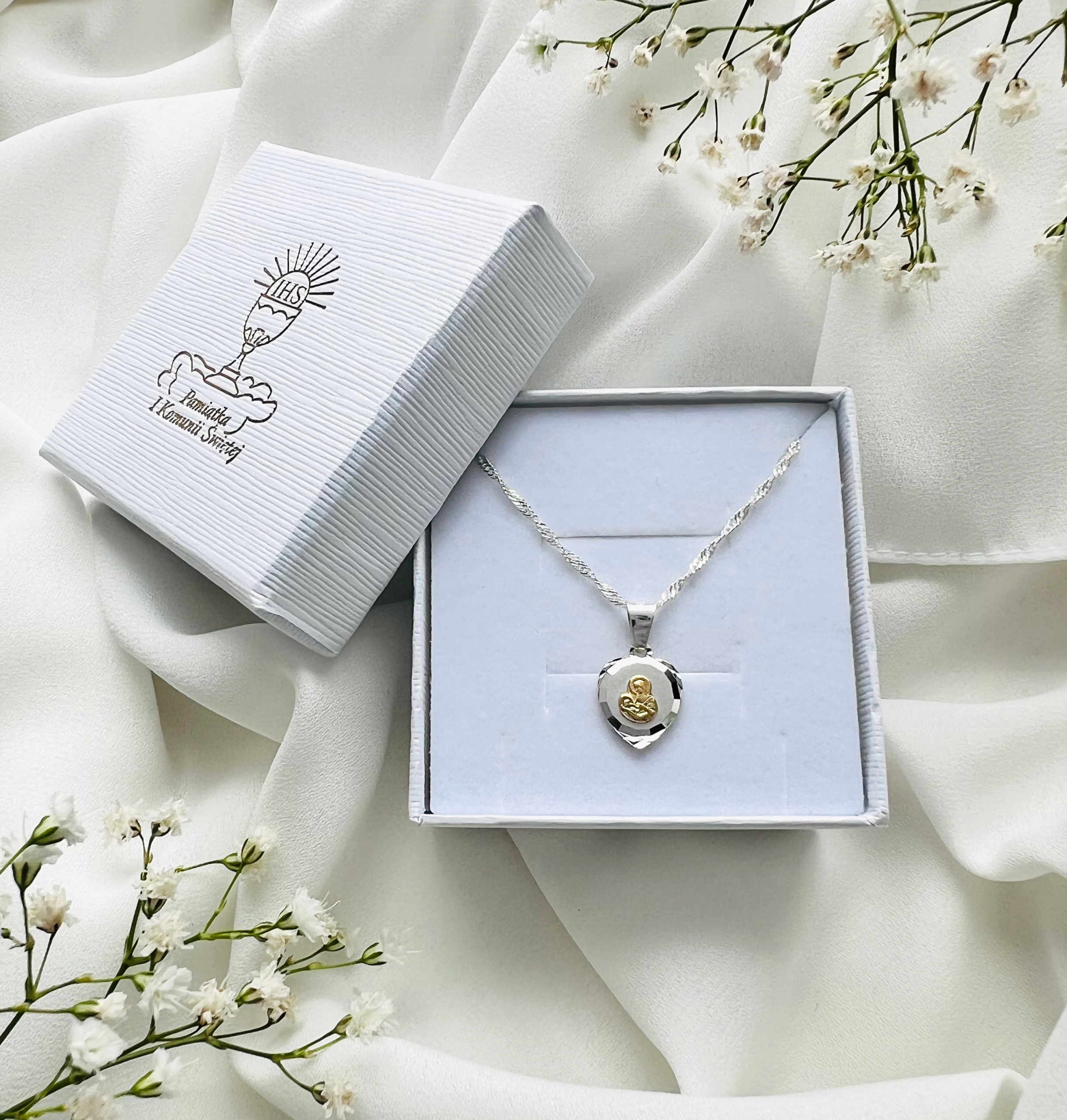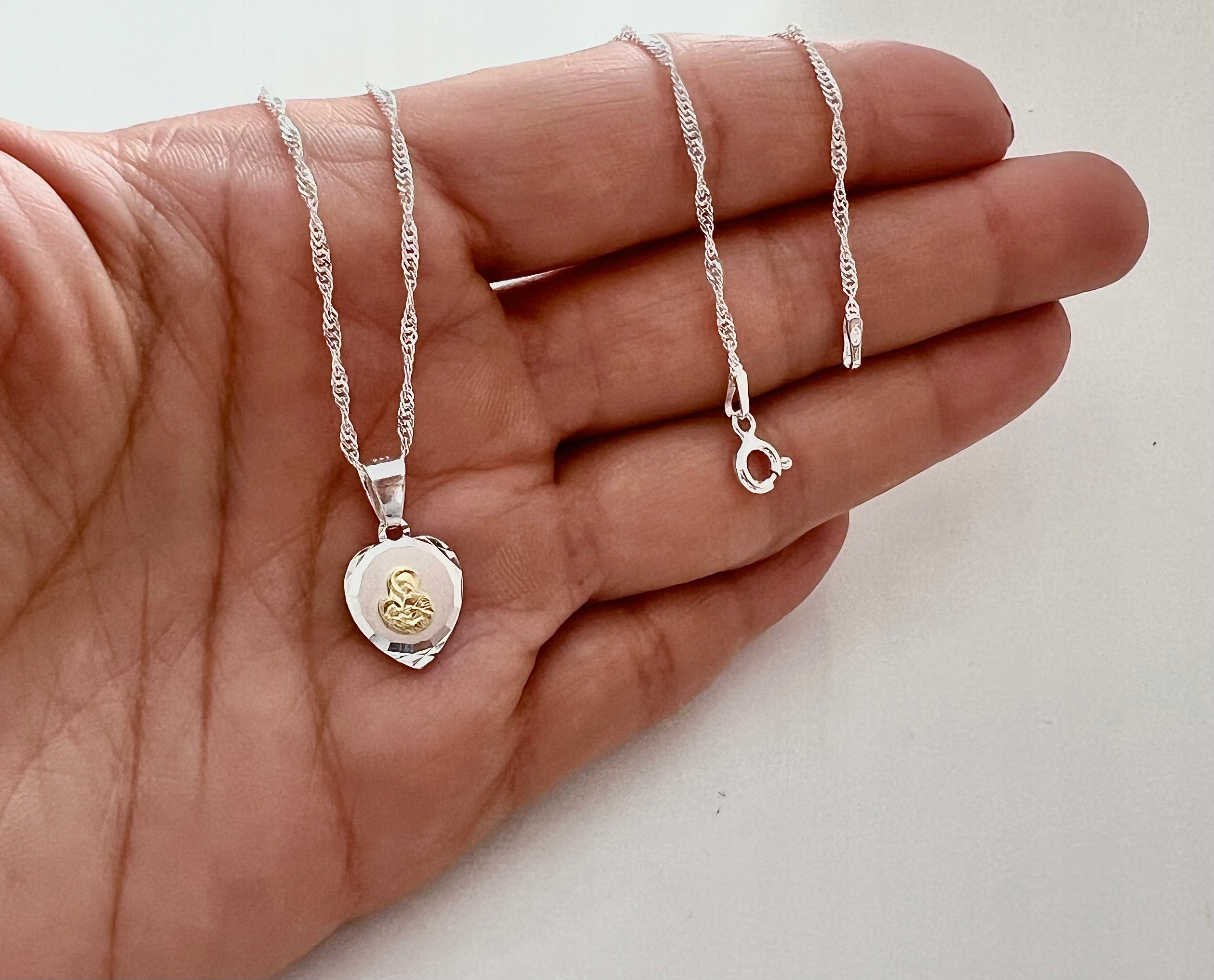 СРІБНИЙ ЛАНЦЮЖОК ТА МЕДАЛЬ ДЛЯ ПРИЧАСТЯ СЕРЦЕ БОЖОЇ МАТЕРІ ДЛЯ ПРИЧАСТЯ ХРЕЩЕННЯ