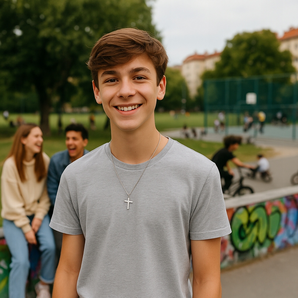 Срібний ланцюжок із хрестиком із хірургічної сталі 316L - поза часом, міцний та елегантний. Ідеальний подарунок, який підкреслить стиль і важливість моменту.