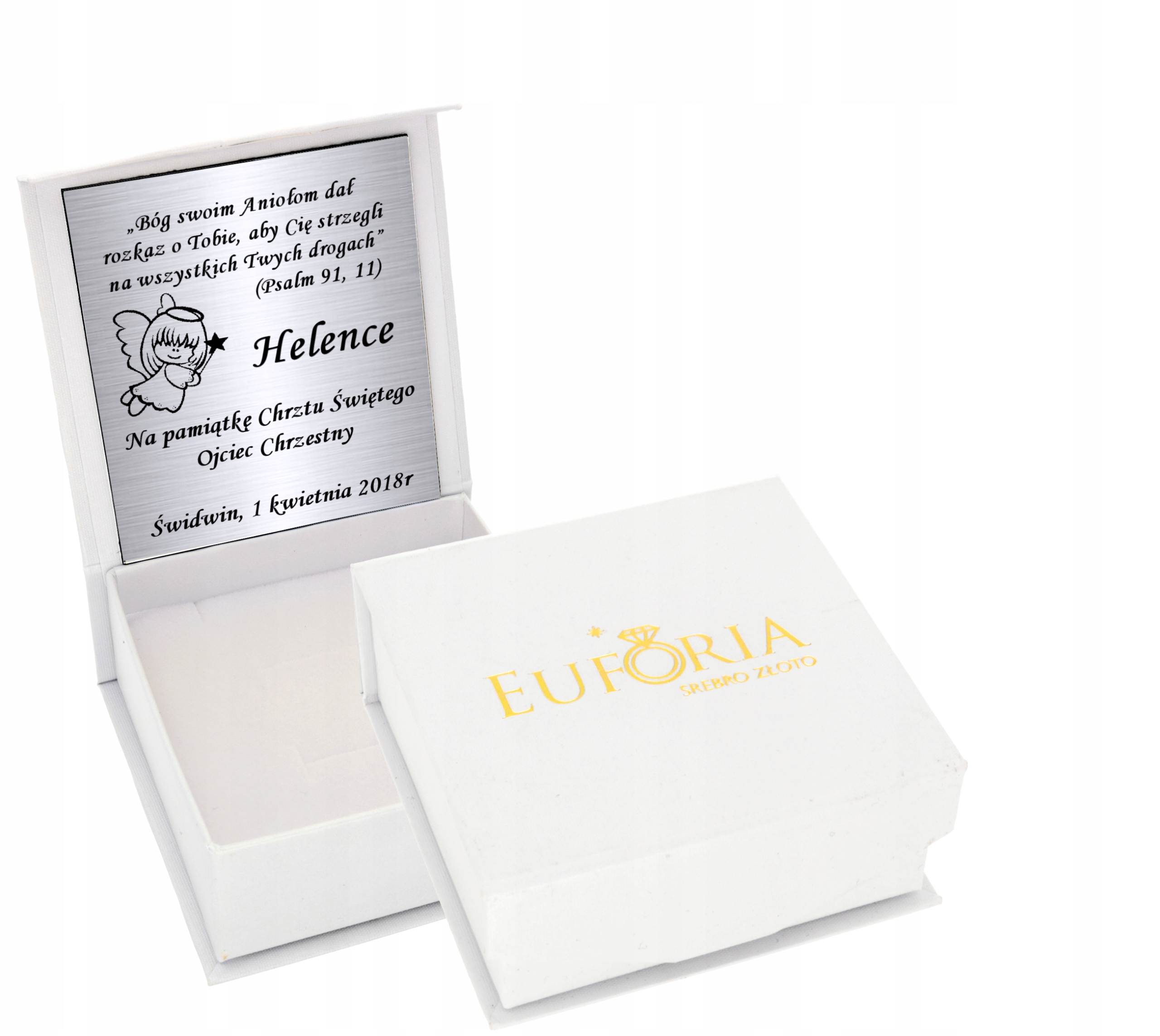 На табличці, яка знаходиться всередині коробки, ми можемо зробити вигравірувану присвяту.