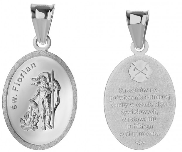 На лицьовій стороні медальйона розміщено зображення святого Флоріана та гравіювання на назад : «Навчайте пожежників жертовності» та самовідданому служінню під час стихійних лих у порятунку людських життів та майна »