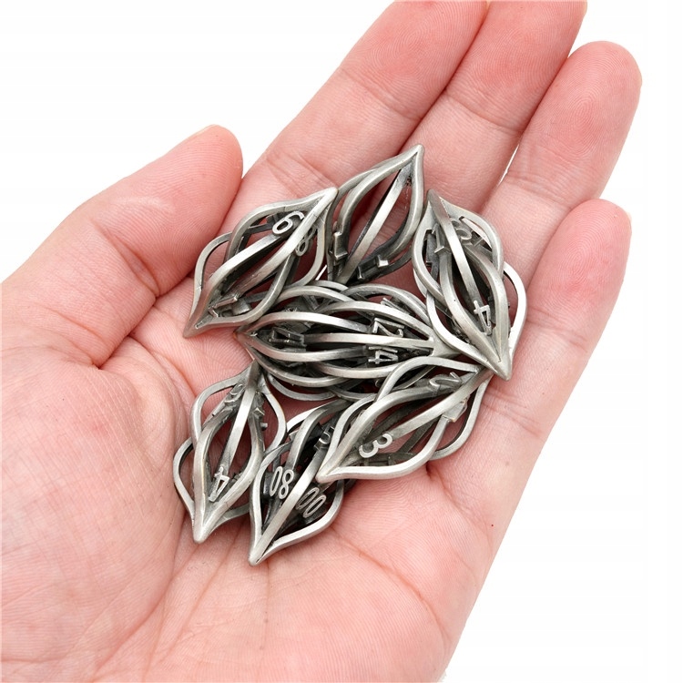 У пропозиції стійкості до радіатора ви знайдете металеві кістки для ігор у практичних наборах. Набори містять високоякісні кубики RPG, сім у кожній упаковці: