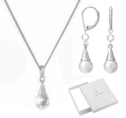 Надзвичайно жіночний комплект ювелірних виробів з перлами виготовлений з незмінно посрібленого ювелірного сплаву, відповідно до найвищого ювелірного мистецтва та уваги до деталей, має оригінальні фірмові етикетки.