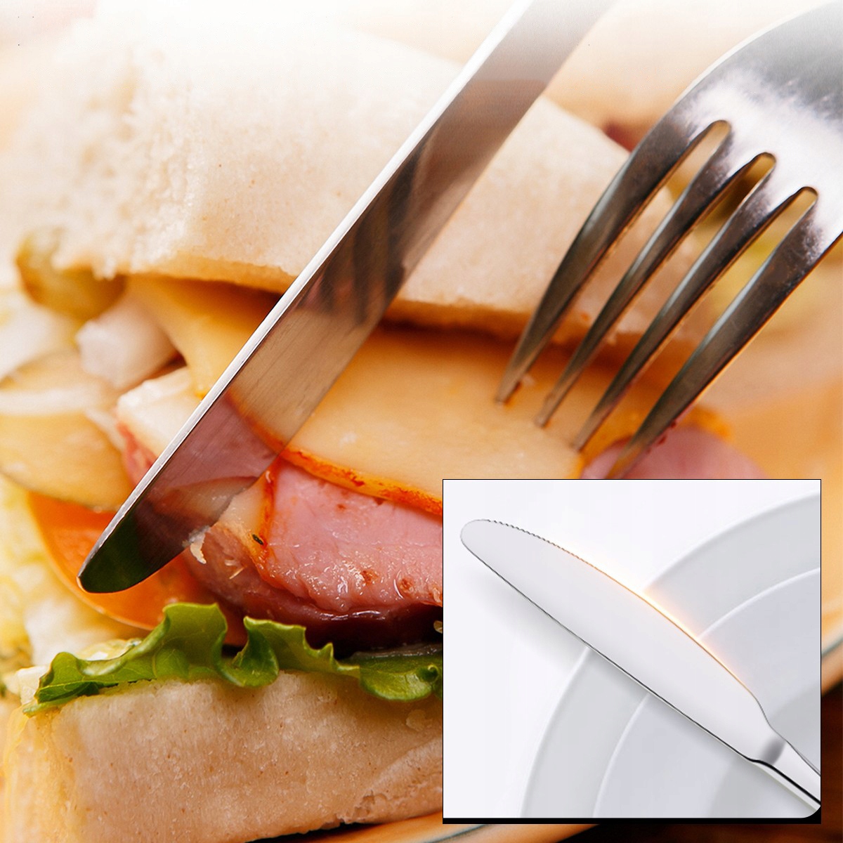 Цей набір столових приборів включає 12 столових ножів, 12 столових ложок, 12 столових виделок і 12 чайних ложок і є необхідним обладнанням для сімей або ресторанів. Набір також є необхідним інструментом для повсякденного використання як під час приготування обідів, так і вечірок.