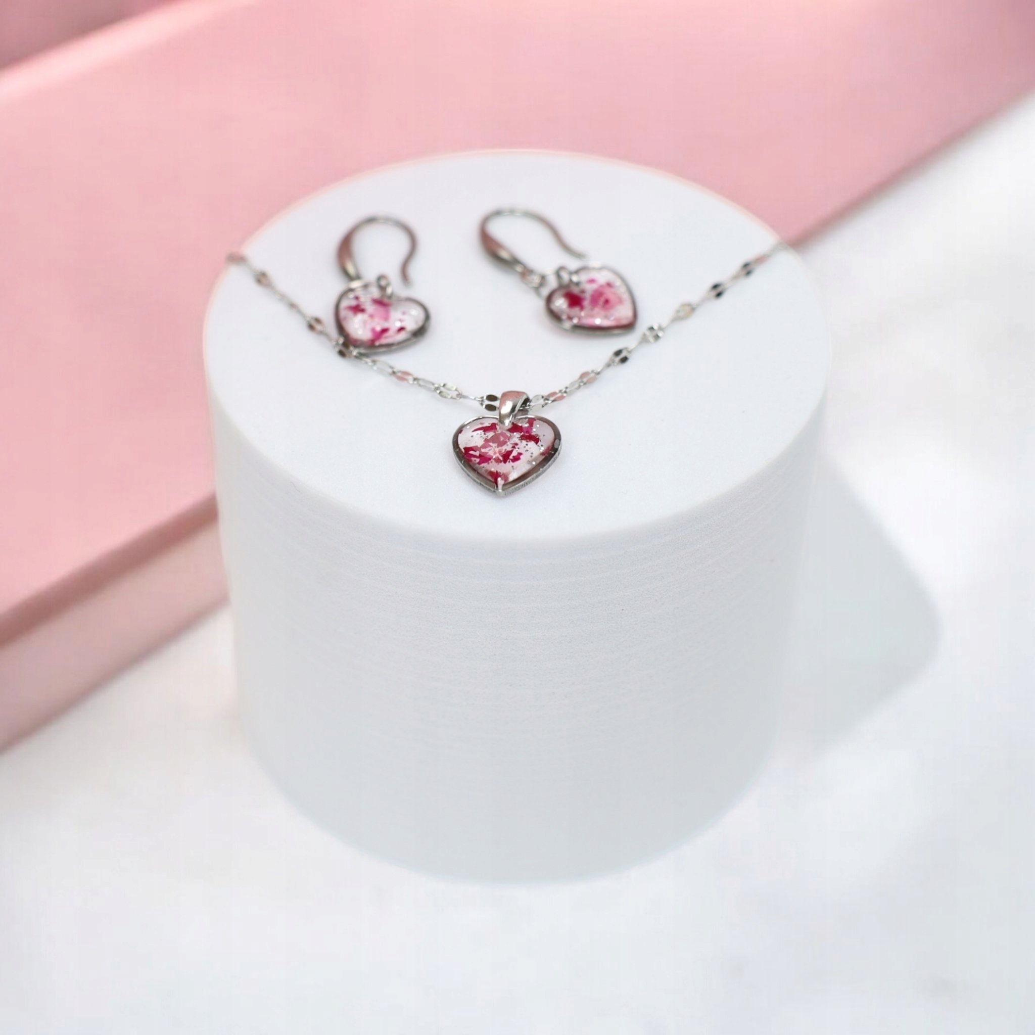 Набір складається з елегантного намиста та пристосованих сережок. Кожен елемент відрізняється унікальним дизайном, який поєднує в собі класичний стиль з романтичним мотивом пелюстків троянди.
