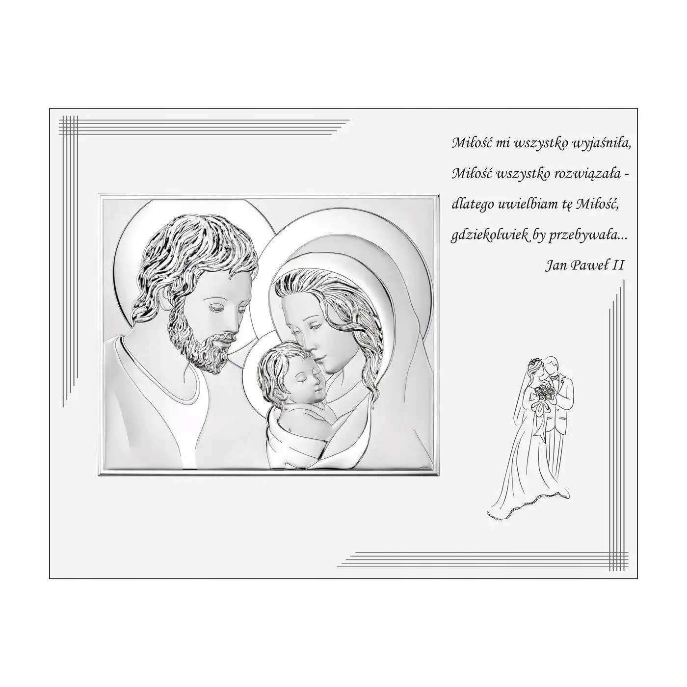 Сучасний срібний живопис Святого Сімейства на білому панно 25x20 | Розмір: 25х20 см | Артикул: VL872S2BI