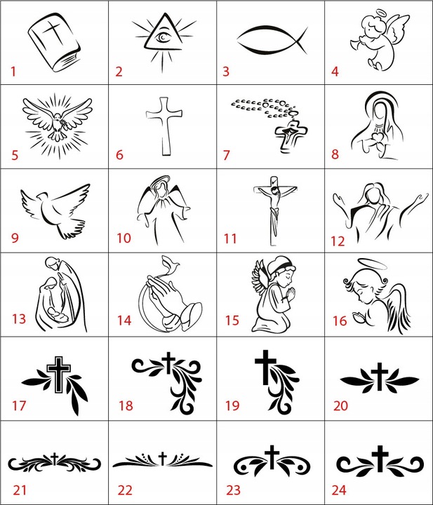 - Релігійна графіка : ангели, хрести, силуети святих, ікони та молитви