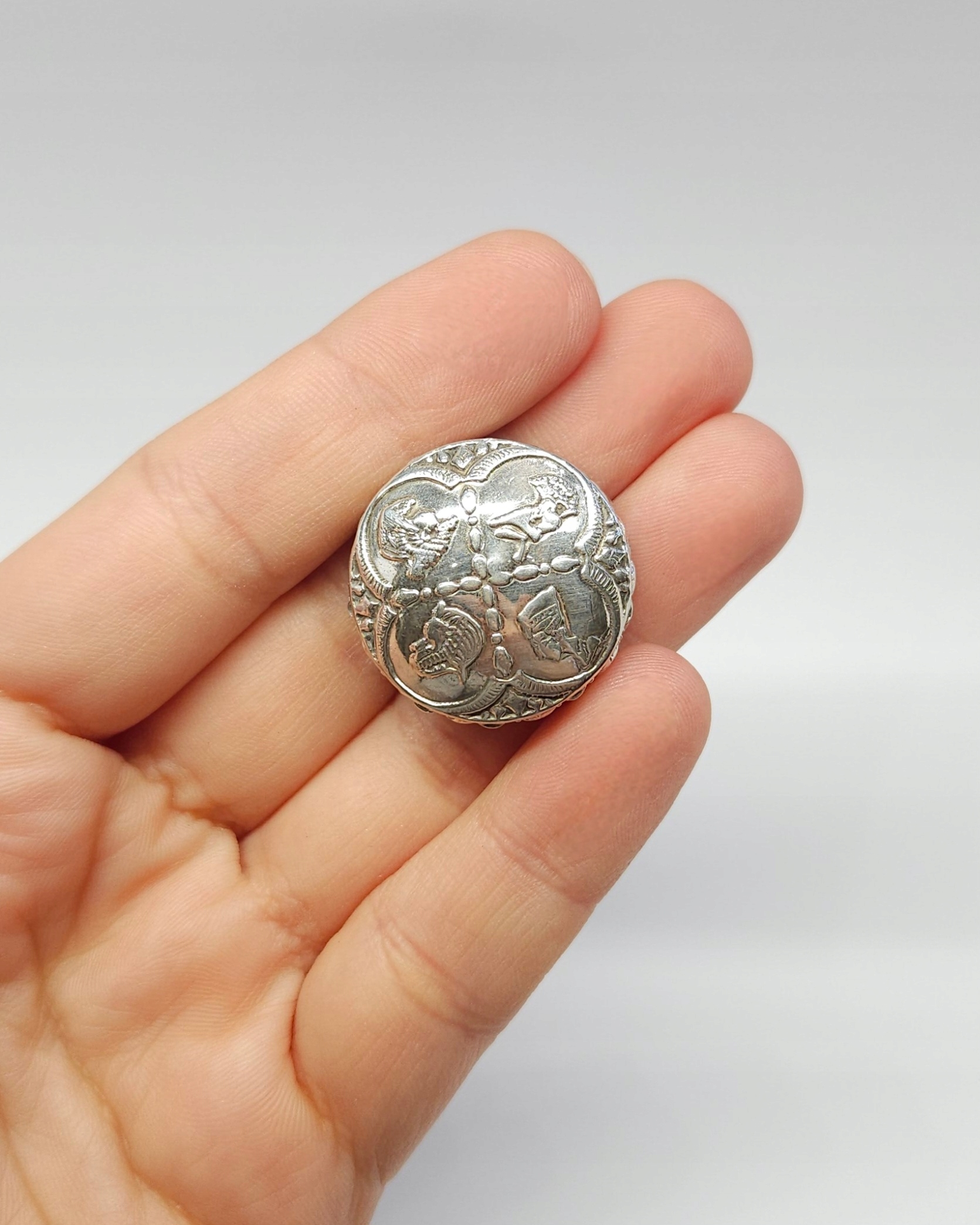 Срібний пігуляр, пуздерко, контейнер срібло пр. 0,800 єгипетські мотиви