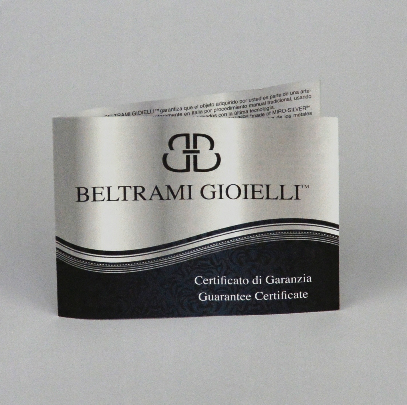 Ви також знайдете в ньому оригінальну листівку виробника в італійській мові та польську з сертифікатом справжності та інформації про те, як піклуватися. Для чищення слід використовувати лише м'яку тканину або теплу воду. Ви не повинні використовувати жодних засобів для чищення, включаючи ті, що призначені для очищення срібла.