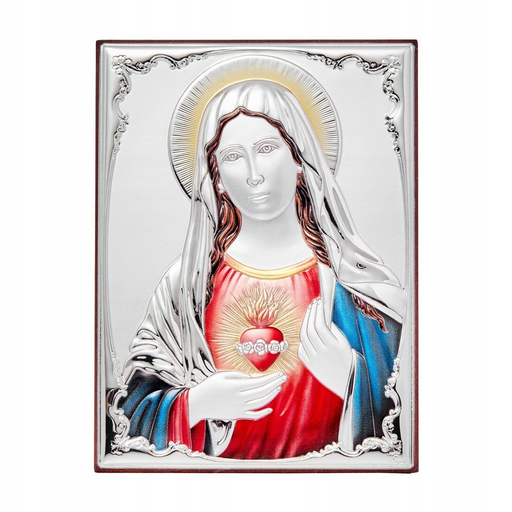 Срібна картина Непорочного Серця Марії стане чудовим сувеніром до таких важливих свят у житті кожної людини, як хрещення, конфірмація, причастя, вінчання, річниця шлюбу чи священицькі свячення. Серце Марії є символом материнської любові. Тонка і навіть майстерна передача деталей, таких як заломлення матеріалу, ореоли або вирази обличчя героїв, порадує кожного щасливого покупця чи одержувача.