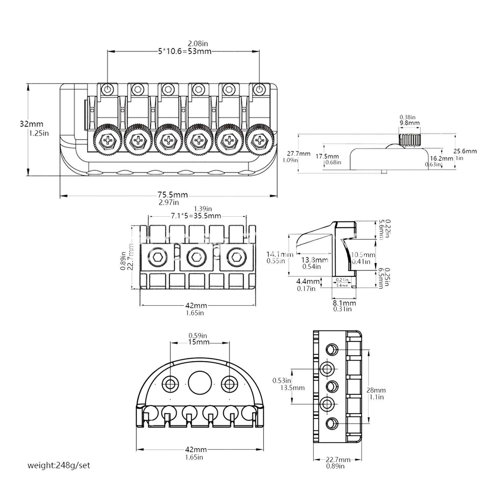 3. Вінтажний вигляд: ретро -зовнішній вигляд, цей 6 -розправлений гітарний міст приносить трохи класичного шарму на гітарі. Прикріплені гвинти та клавіші - це легка збірка та регулювання, поєднуючи естетику у старовинному стилі з сучасною зручністю для любителів гітари.