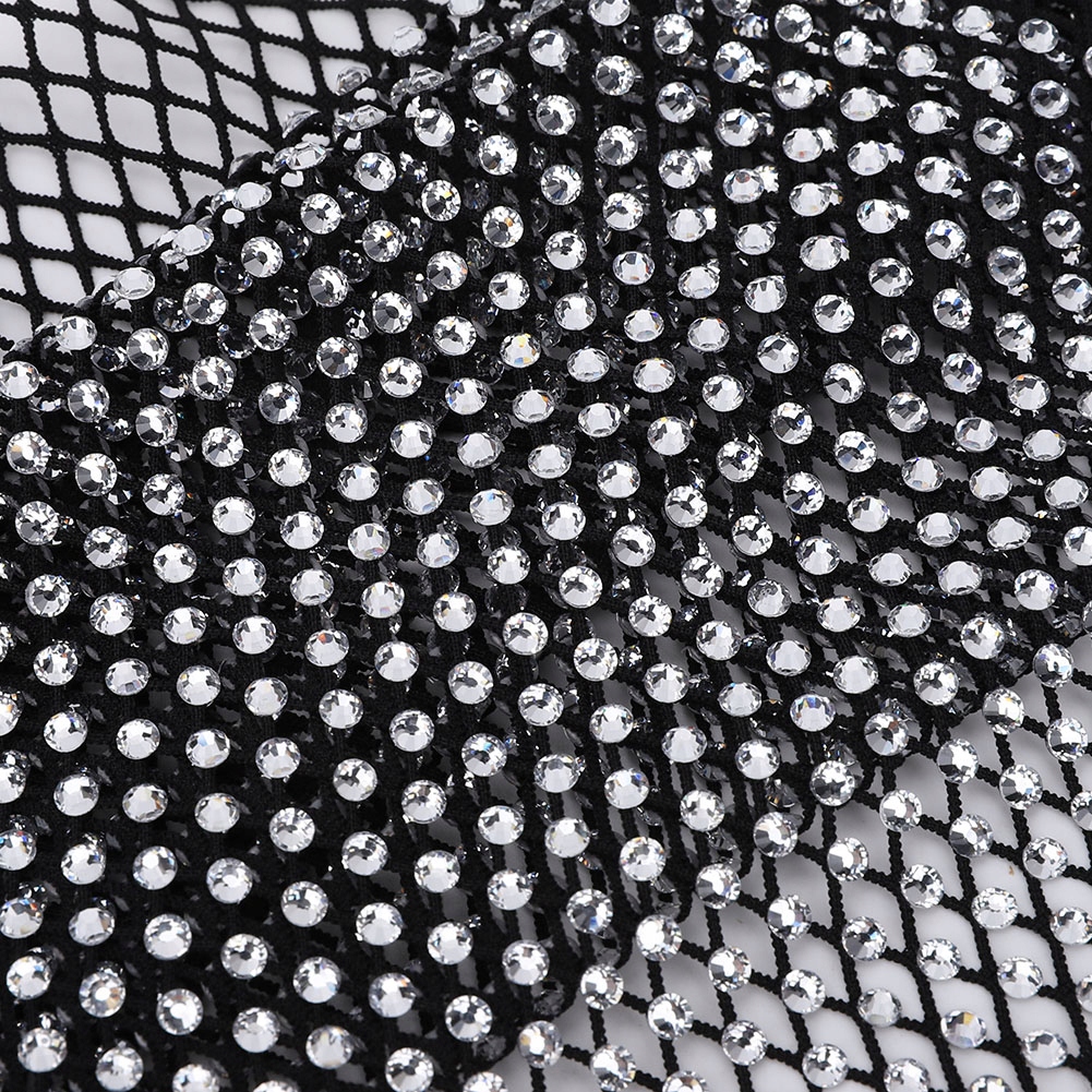 SS16 Rhinestone Mesh Elastic Fabric Crystal Шиття