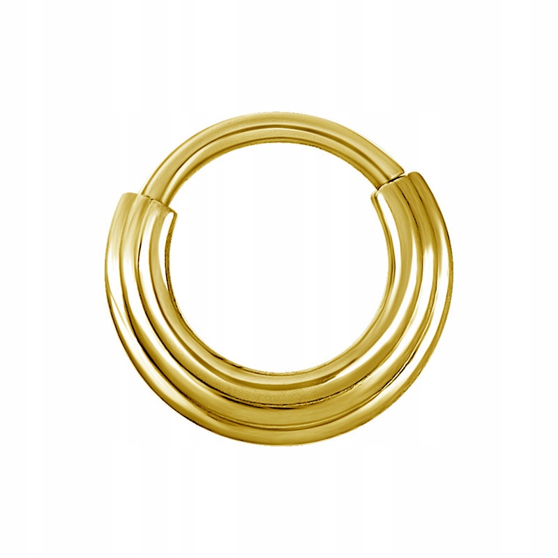 Сережка закривається фрагментом кола, закріпленим на петлі. Декорована каблучка з високоякісної хірургічної сталі 316L, вкрита тонким шаром 24-каратного золота.