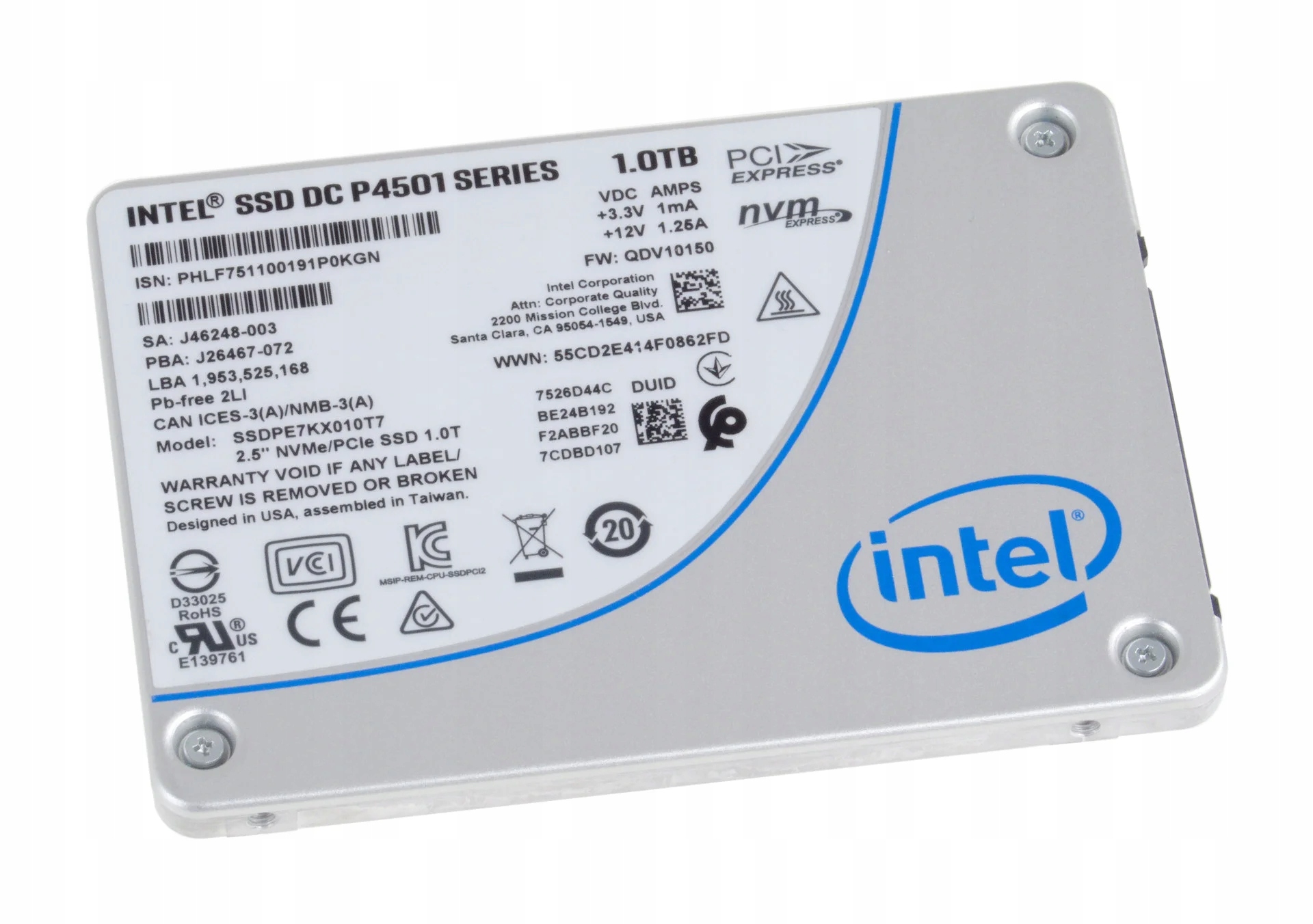 SSD Intel 1TB 2.5 "NVME U.2 P4501 SSDPE7KX010T7