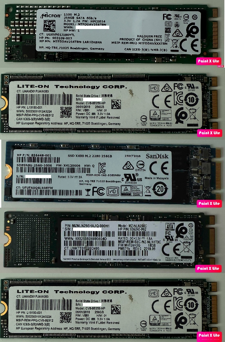 - SSD накопичувачі відомих виробників (Samsung, Hynix, SanDisk, Toshiba, MICRON, LITEON...). Вони можуть відрізнятися детальними технічними параметрами.
